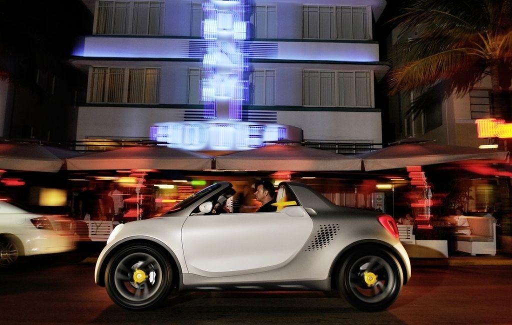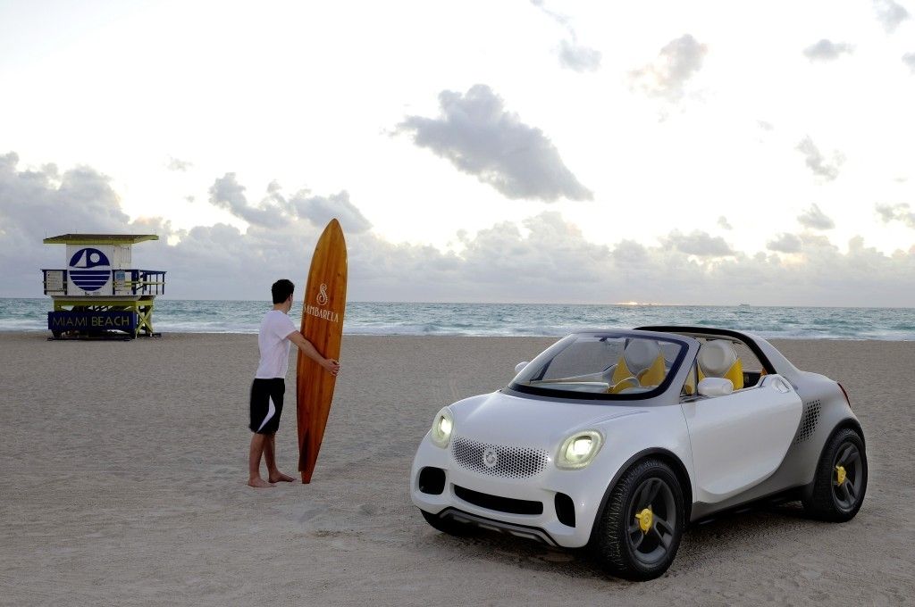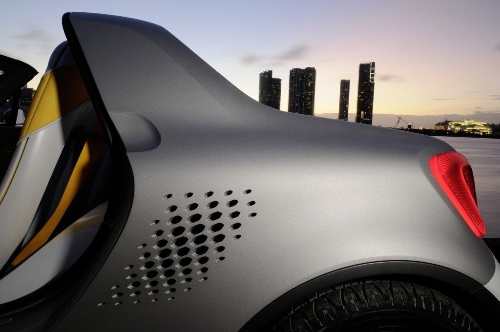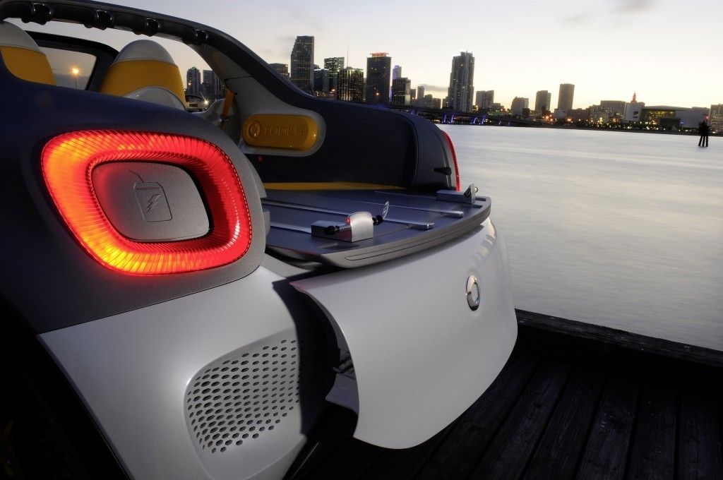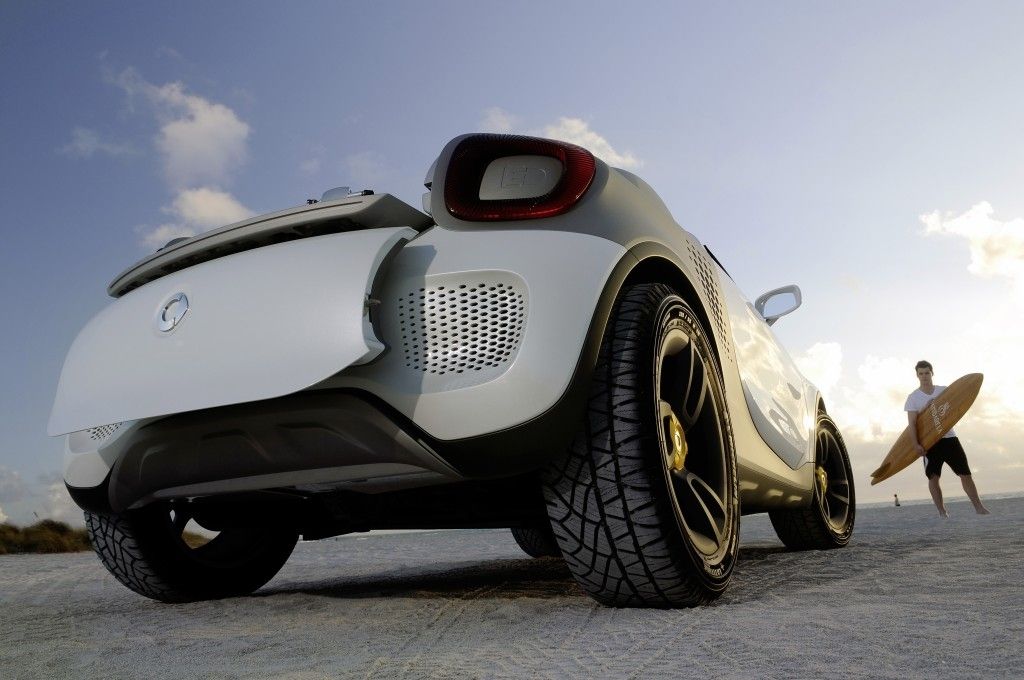Jeśli jesteście ciekawi, jak może wyglądać Smart w nadwoziu pick-up to polecamy Wam przyjrzeć się poniższym zdjęciom. Widzimy na nich prototyp for-us z 3,5-metrowym, bojowo wystylizowanym nadwoziem, wnętrzem dla 2 osób i sporej ilości bagażu, a także elektrycznym napędem proponującym 75 KM mocy i 130 Nm momentu obrotowego.