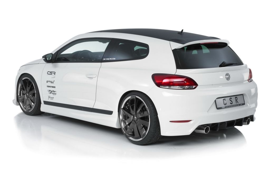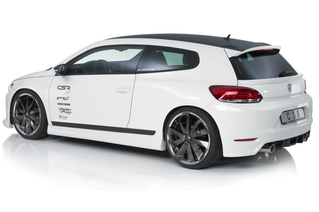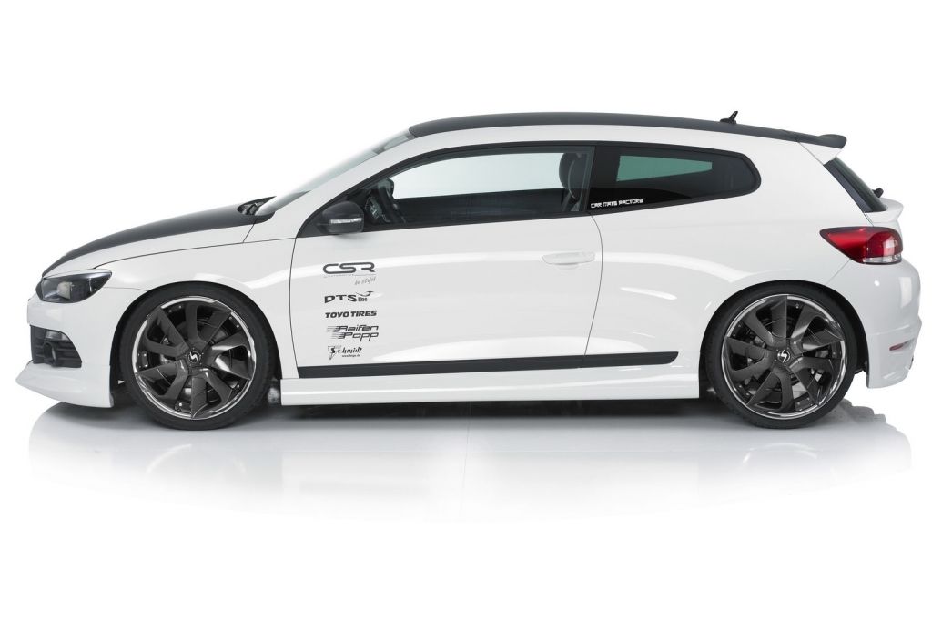 Choć karoseria Volkswagena Scirocco już w swojej standardowej formie urzeka sportową linią, firmy tuningowe decydują się nadać jej jeszcze bardziej agresywny charakter. Dokonała tego m.in. firma CSR Automotive, która ozdobiła nadwozie Scirocco aerodynamicznym body-kitem, 20-calowymi felgami Schmidt Revolution, a także dwiema wyraźnie zaznaczonymi końcówkami wydechu.