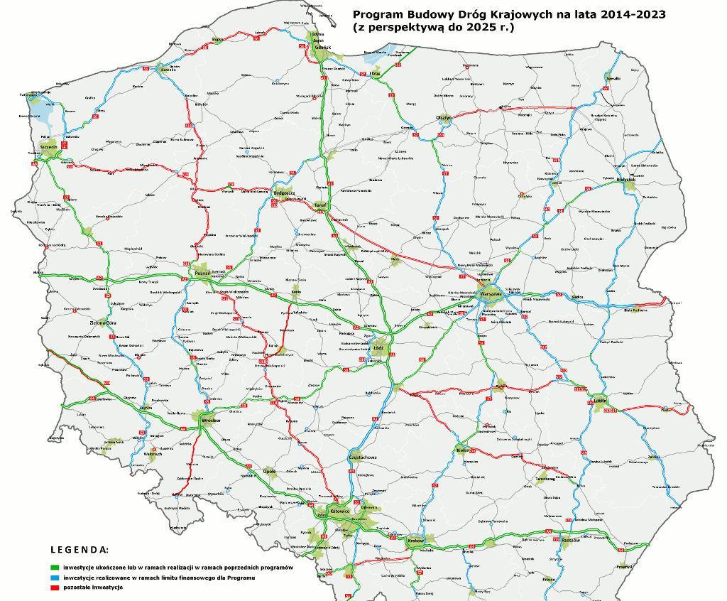 Ważne odcinki dróg w planach bądź realizacji: