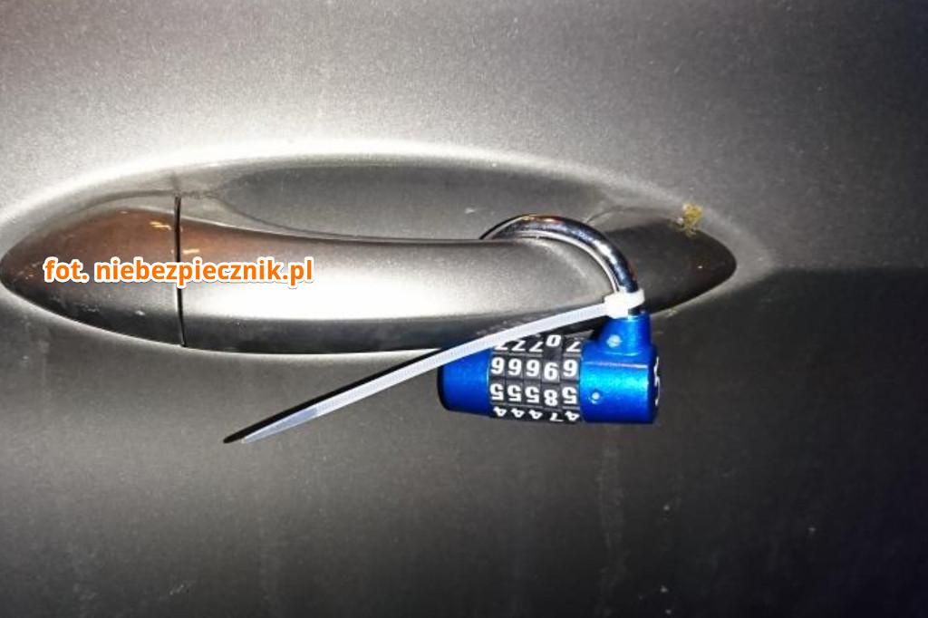 Warto dodać, że założona kłódka (w tym przypadku od strony pasażera) nie przeszkadza w dostaniu się do wnętrza auta, a tym samym w jeździe. Naturalnie, im większa prędkość, tym bardziej będzie taka kłódka "latać" i uderzać o drzwi, uszkadzając w ten sposób lakier w okolicy klamki. Nie mówiąc już o irytacji podróżujących osób.