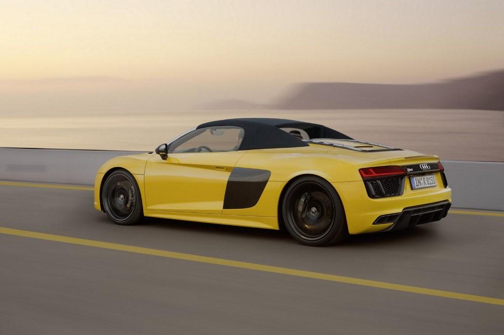Miano najszybszego modelu z otwartym dachem Audi R8 V10 Spyder zawdzięcza 5,2-litrowej jednostce wolnossącej. Widlasta 10-tka rozwija moc 540 KM i tyle samo maksymalnego momentu obrotowego, dostępnego przy 6.500 obr/min. Tak uzbrojone Audi R8 z otwieranym dachem przyspiesza do 100 km/h w 3,6 s, czyli zaledwie o 0,1 s wolniej niż jest w stanie uczynić to odmiana coupe. Prędkość maksymalna wynosi 318 km/h. Jesteśmy bardzo ciekawi, czy, jak w przypadku wersji zamkniętej, do oferty trafi również wersja Plus z mocniejszą o 70 KM jednostką napędową.