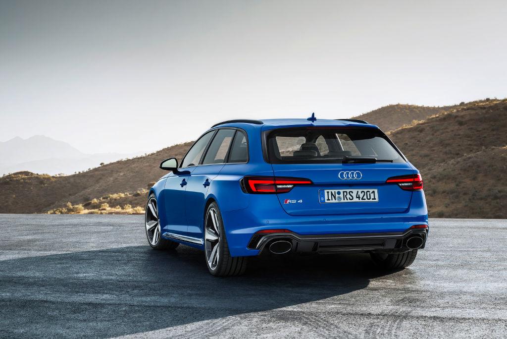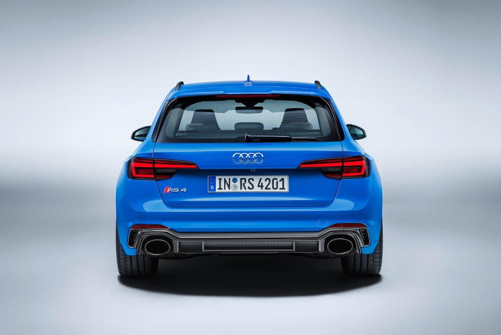 Projektanci nowego Audi RS4 Avant czerpali wzorce z modelu Audi 90 quattro IMS GTA. Mamy więc sporych rozmiarów wloty powietrza z typową dla wersji RS strukturą plastra miodu, a także szeroką i płaską osłonę chłodnicy Singleframe. W tylnej części nadwozia pojawił się dyfuzor, dwie owalne końcówki wydechu oraz spojler dachowy. W standardzie dostępne są 19-calowe felgi aluminiowe, ale za dopłatą można zamówić o rozmiar większe. Niebieski lakier nadwozia (Nogaro z efektem perłowym) nawiązuje do pierwszej generacji RS4 Avant z 1999 r.