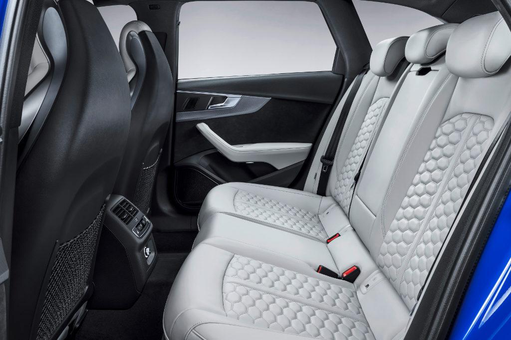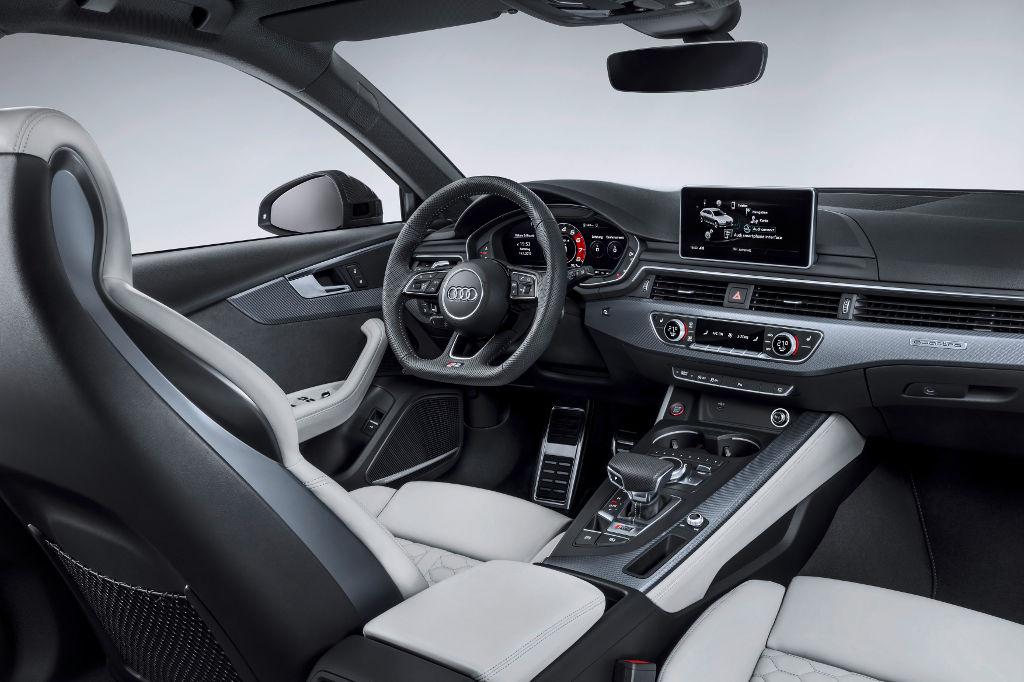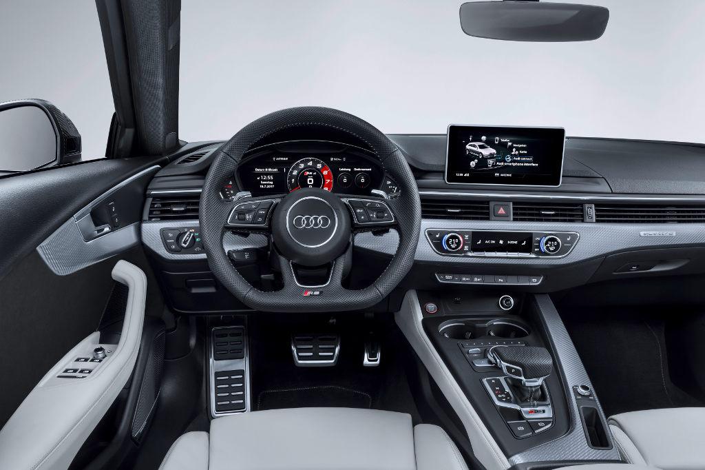W kabinie Audi RS4 Avant sportowy charakter modelu podkreśla czarna kolorystyka, sportowe fotele oraz płaska od dołu wielofunkcyjna kierownica sportowa. Na wirtualnym kokpicie oraz wyświetlaczu head-up mogą być wyświetlane typowe dla modeli RS dane, jak siły przeciążenia, ciśnienie w oponach oraz wykorzystywany moment obrotowy. Oferowane pakiety stylizacyjne, w których dostępne są materiały aluminiowe bądź z włókien węglowych, pozwalają na dość szeroką indywidualizację wnętrza.