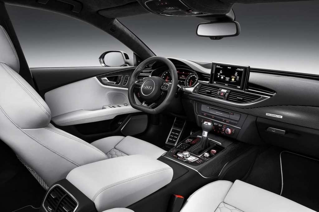 W przednim zderzaku znajdziemy również większe wloty powietrza, zaś w ofercie wylądowały nowe kolory nadwozia: Sepang Blue Mythos Black, Glacier White oraz Floret Silver. Najważniejszą zmianą jest zastosowanie (opcjonalnie) świateł Matrix LED znanych z nowego Audi A8 i S8. Co prawda dodatek ten będzie dostępny również w modelu A7 i S7, ale w RS7 będą one nieco przyciemnione dla lepszego wyglądu.