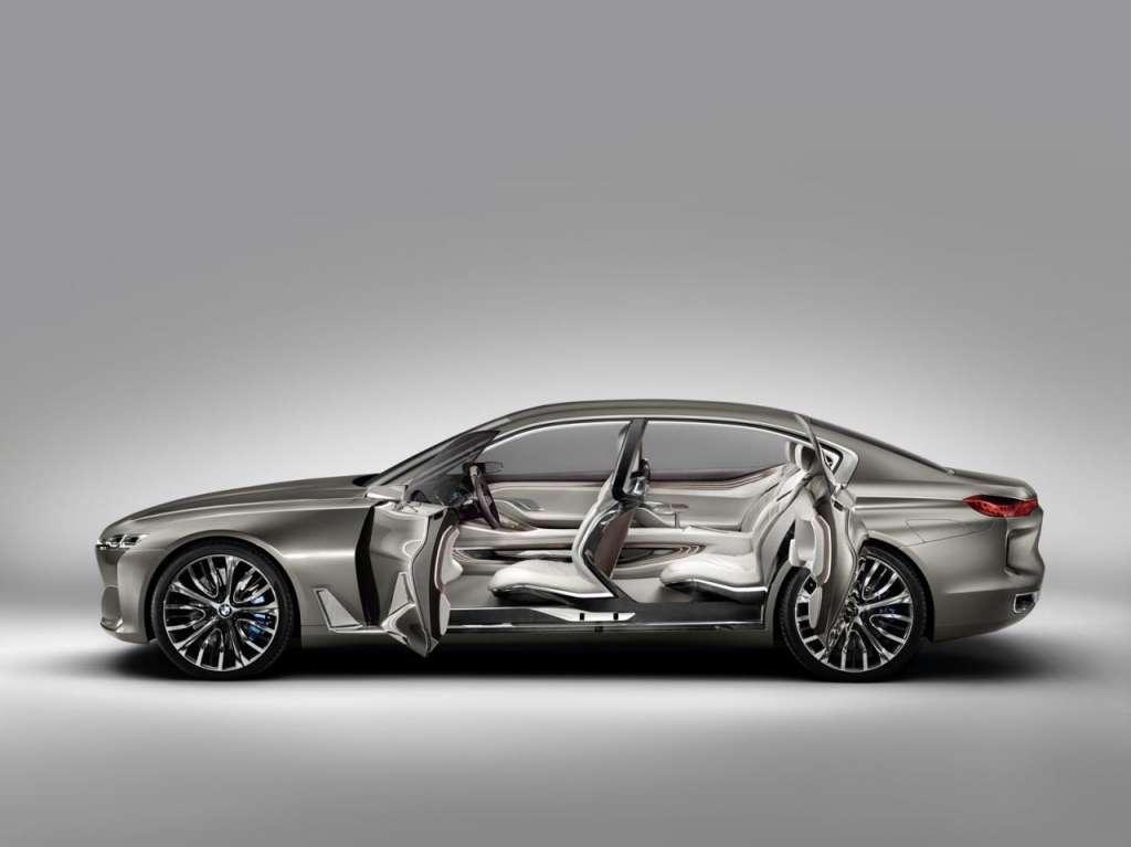 BMW Vision Future Luxury to bardzo długi i smukły sedan z drzwiami otwieranymi jak "wrota od stodoły". Z przodu mamy ogromne "nerki", które swą wielkością kontrastują z bardzo smukłymi światłami. Podobną smukłość widzimy w tylnych kloszach lamp. Oprócz tego mamy liczne przełamania, wloty powietrza, przetłoczenia i śmiałe linie.