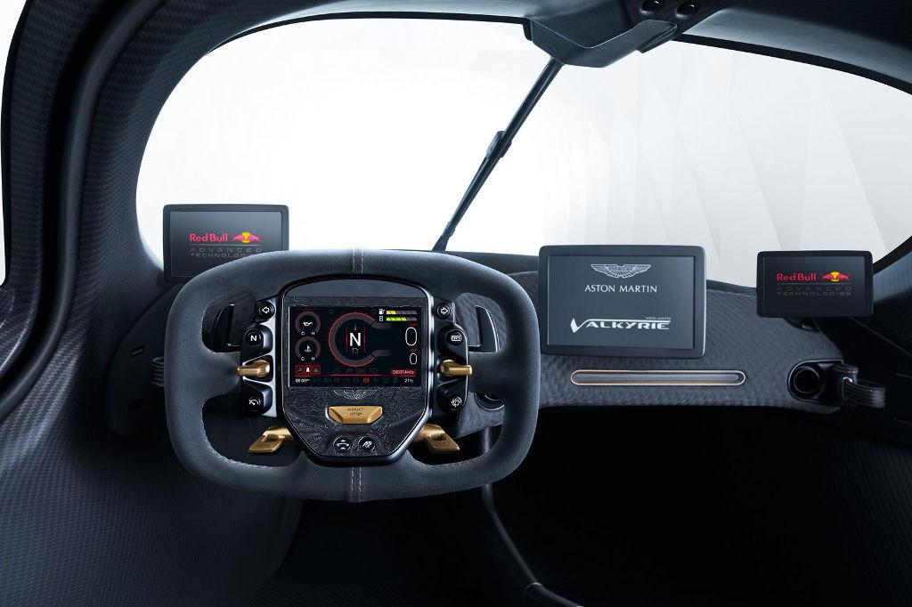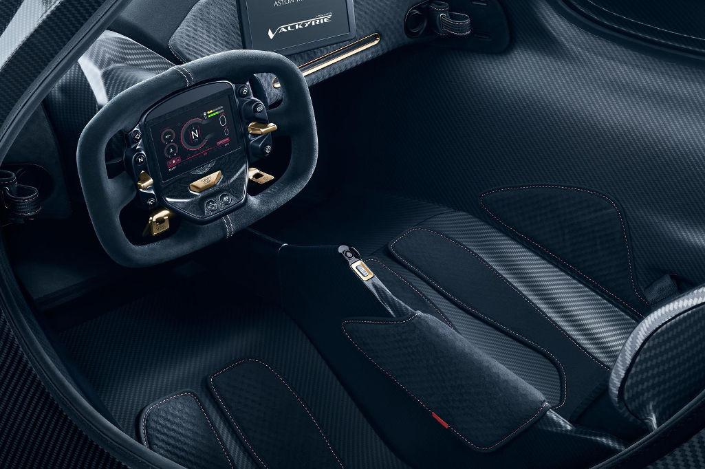 Po raz pierwszy zaprezentowane zdjęcia wnętrza Valkyrie pokazują jego minimalistyczny charakter. Wszystkie przyciski zlokalizowane zostały na kierownicy, zaś w centralnym punkcie deski rozdzielczej znajduje się jedynie sporych rozmiarów ekran. Całość przypomina wnętrza sportowych Astonów, które można było zobaczyć chociażby w niedawnym, 24-godzinnym wyścigu Le Mans. Dominującym materiałem, przynajmniej jeśli mówimy o centralnym kokpicie, są włókna węglowe. Wszystko naturalnie z myślą o jak najniższej masie całkowitej.