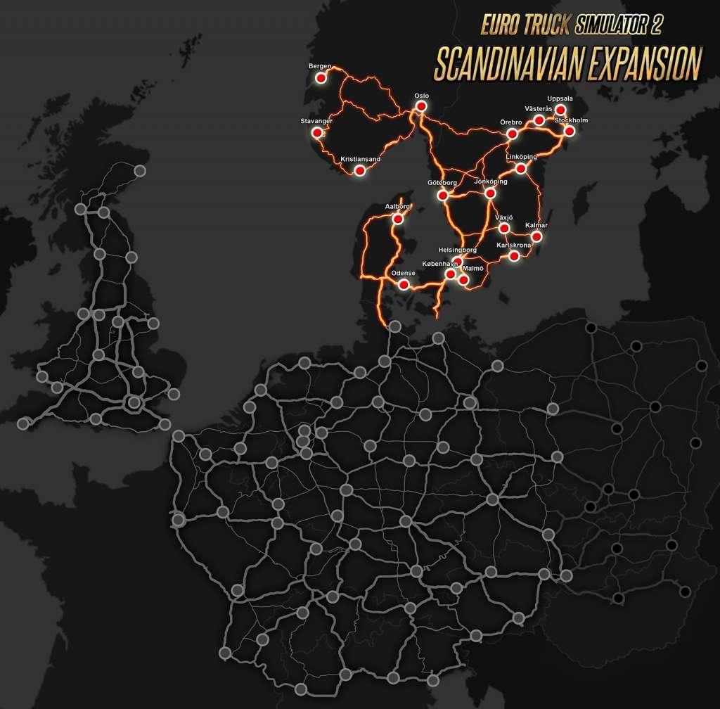 Prace nad najnowszym płatnym dodatkiem do Euro Truck Simulator 2 nabierają tempa. Producent opublikował mapę prezentującą sieć dróg, która zostanie dodana do gry za sprawą Scandinavia DLC. Pojawia się również pakiet bajecznych zrzutów ekranu, w tym z Oslo - największego miasta jakie zostało zbudowane w Euro Truck Simulator 2.