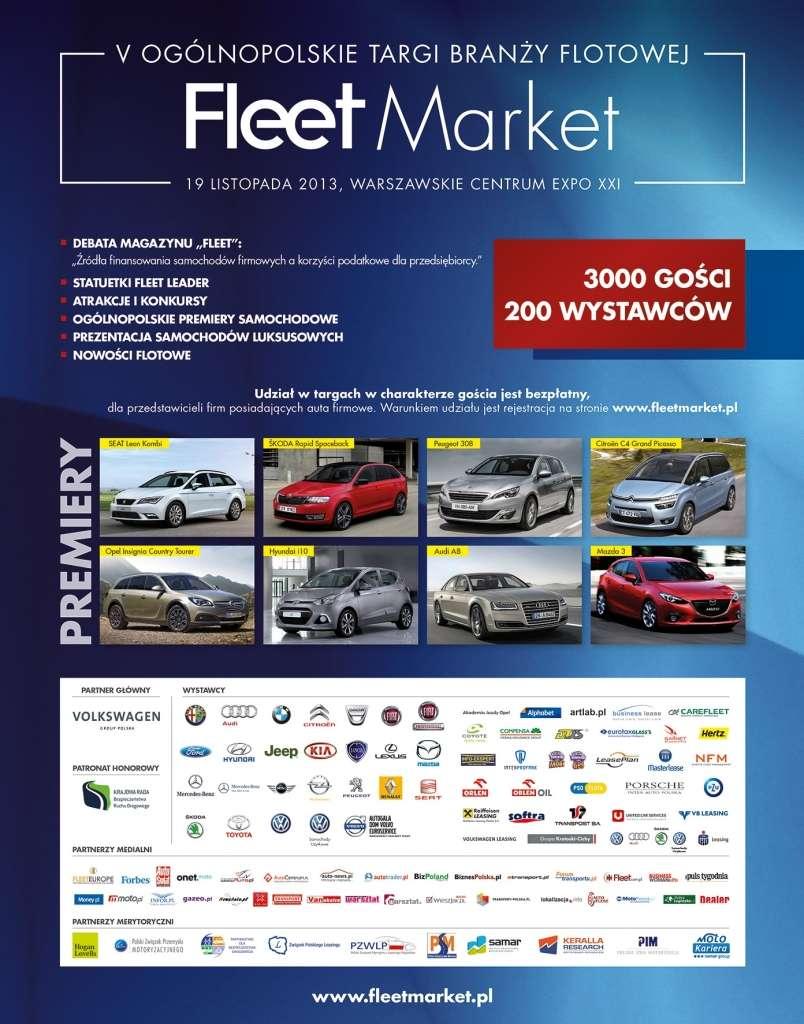 Ogólnopolskie premiery motoryzacyjne, pokazy przedpremierowe oraz prezentacje nowości flotowych będą miały miejsce podczas największych targów branży flotowej w Europie Środkowo Wschodniej - FLEET MARKET 2013, które odbędą się już 19 listopada 2013r. w Warszawskim Centrum EXPO XXI, przy ul. Prądzyńskiego 12/14 w Warszawie.