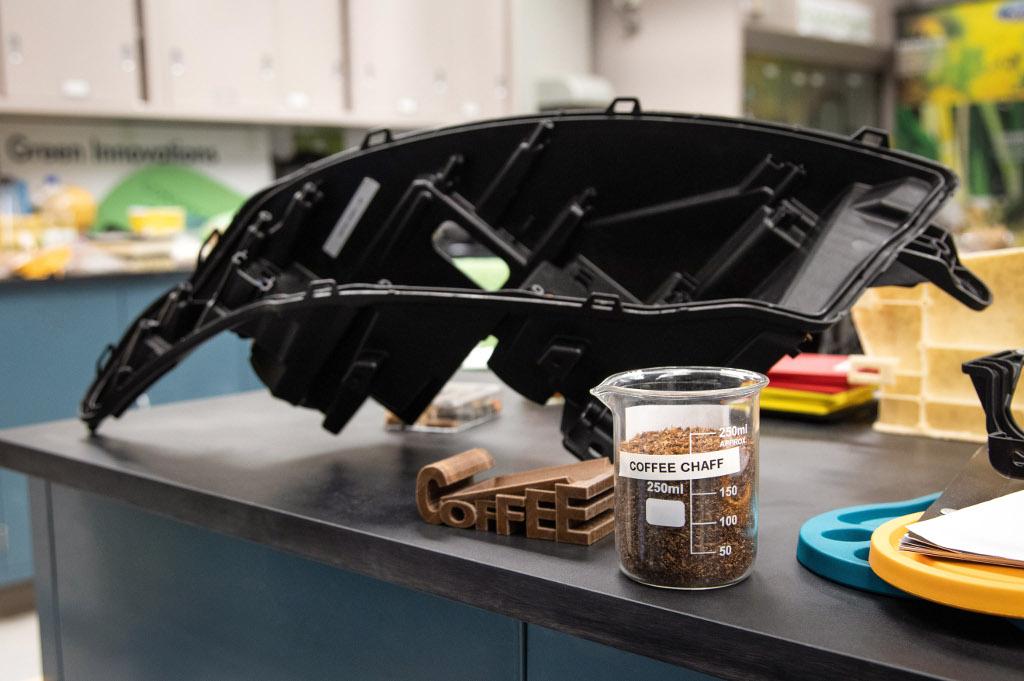 Materiał kompozytowy z dodatkiem resztek ziarenek kawy spełnia odpowiednie normy jakościowe i jest wykorzystywany do wytwarzania obudowy tylnych reflektorów, a także niektórych elementów wewnątrz kabiny, a także pod maską silnika. Jak zapewnia amerykański koncern, powstałe w ten sposób komponenty są o ok. 20% lżejsze od stosowanych do tej pory elementów. Ponadto podczas procesu formowania zużywane jest o 25% mniej energii, a sam materiał odznacza się lepszymi właściwościami cieplnymi od stosowanych do tej pory tworzyw sztucznych.