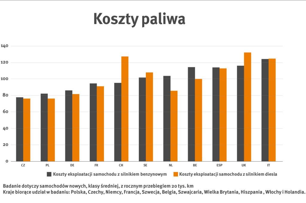 Z przeprowadzonego badania wynika, iż najdroższe paliwo jest obecnie we Włoszech, głównie za sprawą wysokiego podatku VAT. Szwajcaria natomiast nakłada najwyższe podatki na samochody z silnikiem diesla ze względu na emisję spalin, a w szczególności tlenków azotu NOx. Najniższe podatki i opłaty rejestracyjne są w Niemczech, zaś koszty serwisowania są najtańsze w Wlk. Brytanii. Z kolei Hiszpanie mają najdroższe ubezpieczenie, Szwedzi najwyższe koszty bieżącego utrzymania, a w Holandii najdroższe są kredyty samochodowe.