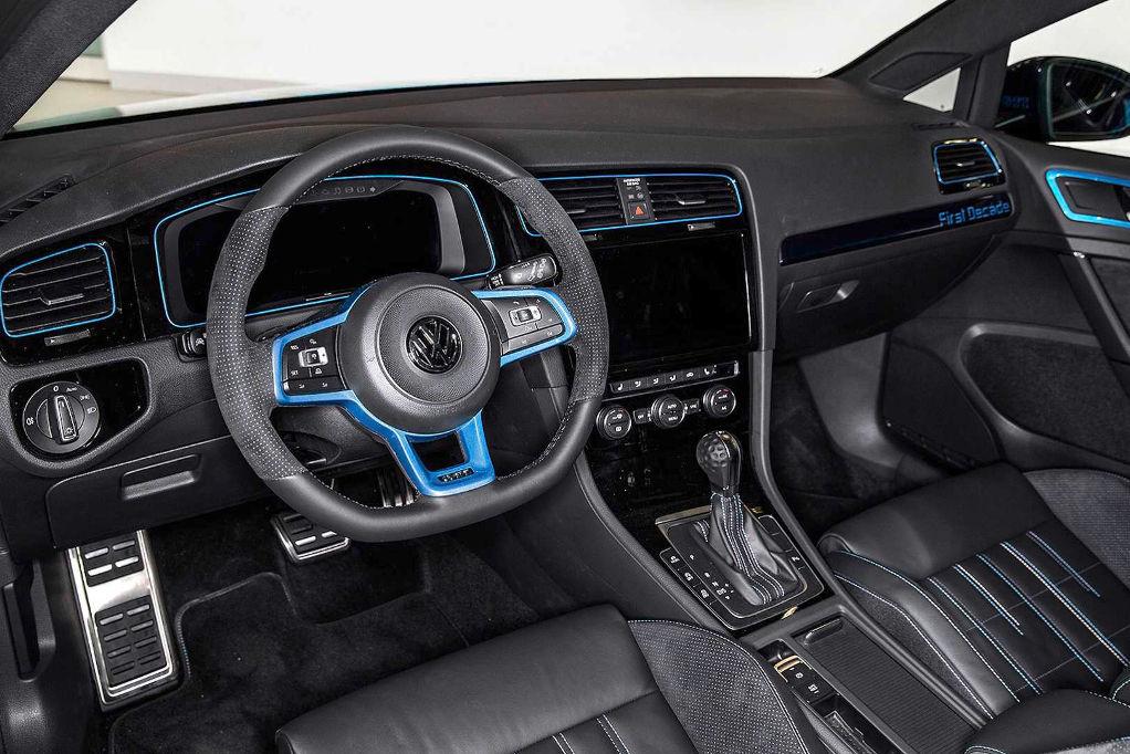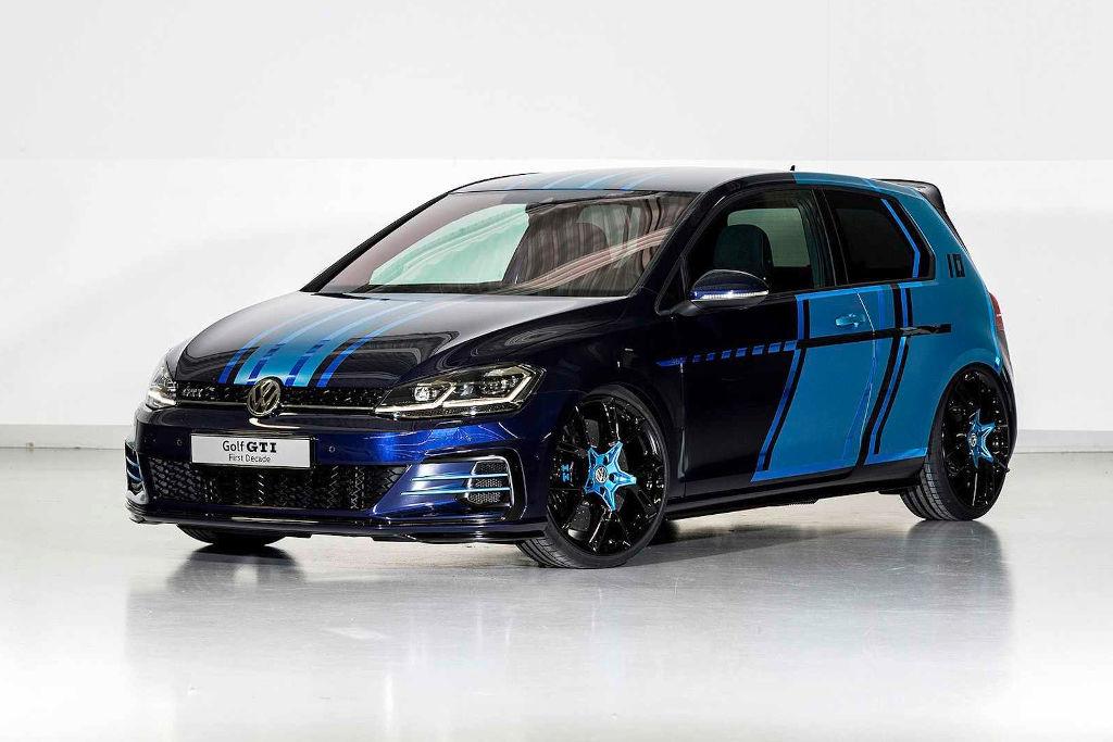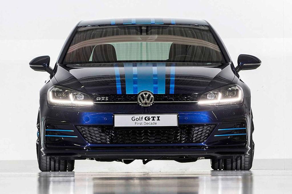 Koncepcyjny Golf GTI First Decade przygotowany został na przykład wspólnie z grupą stażystów. Nadwozie tej wersji Golfa pokryte zostało niebieskim lakierem w dwóch odcieniach. Auto otrzymało tylny spojler od Clubsporta oraz specjalne, 20-calowe felgi ze stopów metali lekkich. W kabinie pozbyto się tylnych siedzeń, a fotel kierowcy może być ustawiany elektrycznie za pomocą specjalnej aplikacji na smartfona. Poza tym fotel ten posiada funkcję masażu oraz kilku ustawień pozycji. Wykończenie wnętrza to przede wszystkim połączenie skóry Nappa oraz Alcantary.
