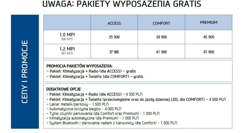 W wariancie Premium zaczynają się ciekawe rzeczy - 14-calowe felgi aluminiowe, łączność Bluetooth z rozpoznawaniem głosu, sterowanie funkcjami z kierownicy, światła do jazdy dziennej wykonane w technologii LED, przednie lampy przeciwmgłowe, tylne głośniki, kierunkowskazy w lusterkach, boczne listwy, skórzaną kierownicę oraz drążek zmiany biegów, a na deser kilka chromowanych dodatków we wnętrzu.
