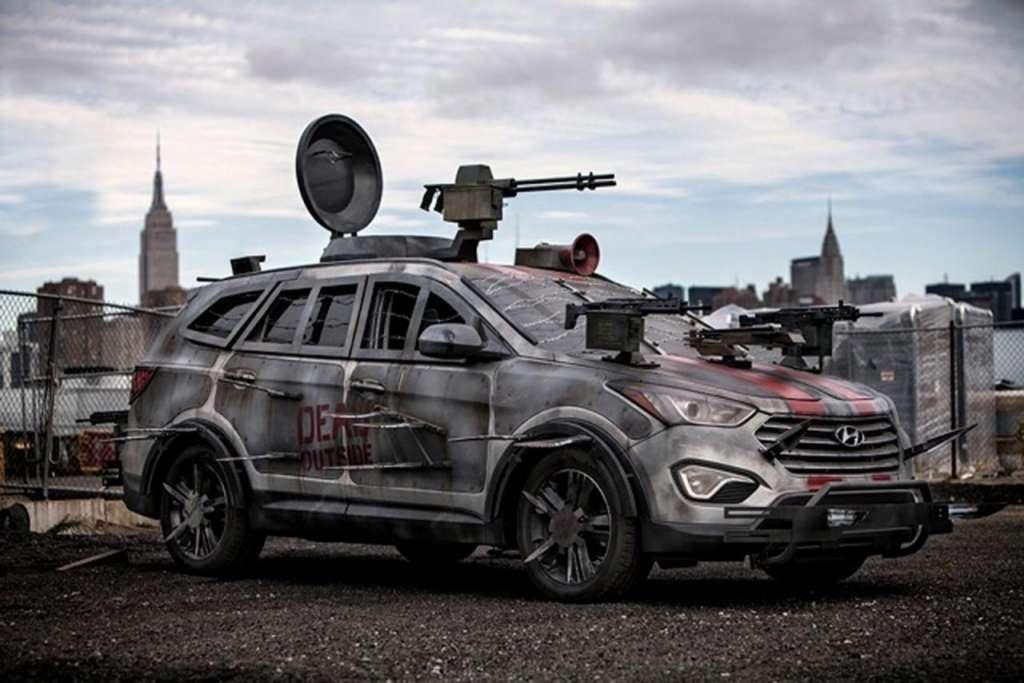 Zejdźmy jednak na ziemię i skończmy żarty. Ten nietypowy model został zaprezentowany na ostatniej imprezie Comic Con w Nowym Jorku. Model o nazwie Hyundai Santa Fe Sport Zombie Survival Machine został zaprojektowany przez Ansona Kuo oraz wykonany przez firmę Galpin Auto Sport by uczcić 10 rocznicę komiksu pt. "The Walking Dead".