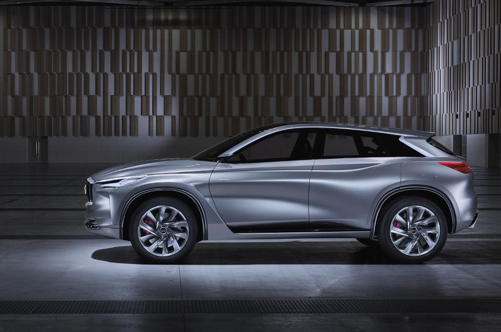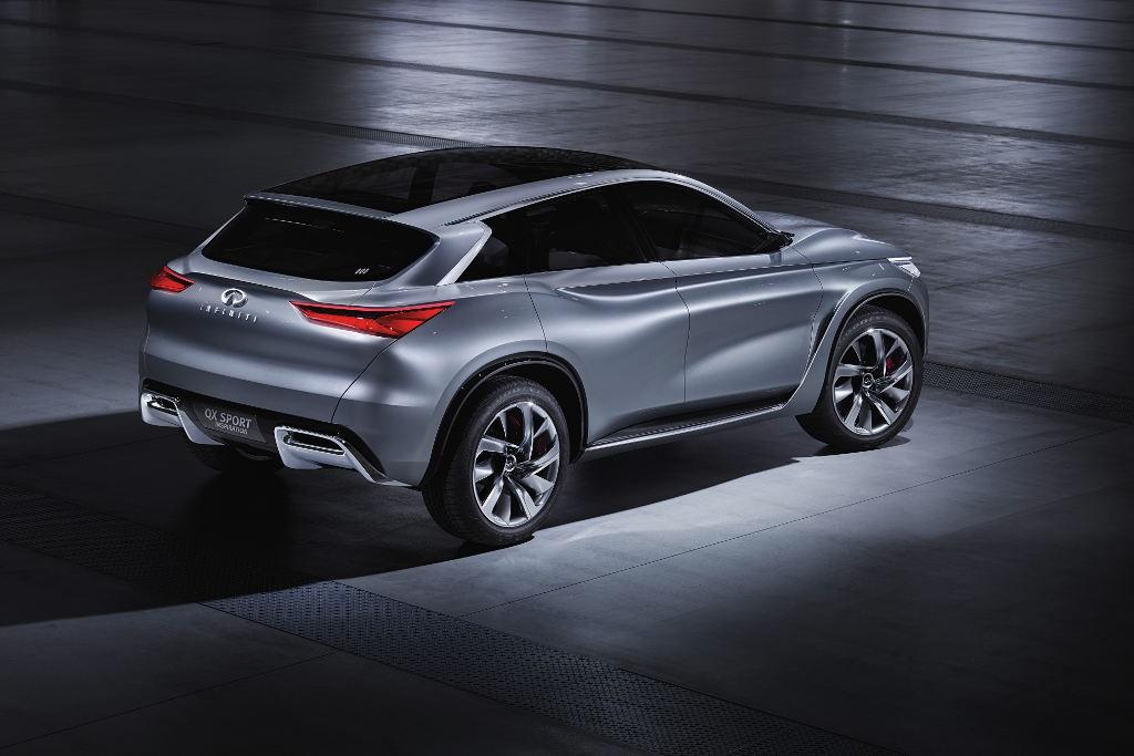 Prototypowy QX Sport Inspiration wyróżnia się ponadto smukłymi liniami, które podkreślone zostały przez liczne przetłoczenia, a także wąskie przednie reflektory oraz tylne lampy. Sportowy charakter konceptu podkreślają wyloty powietrza umieszczone za przednimi kołami czy dwie końcówki układu wydechowego, które w tym modelu mają prostokątne kształty.
