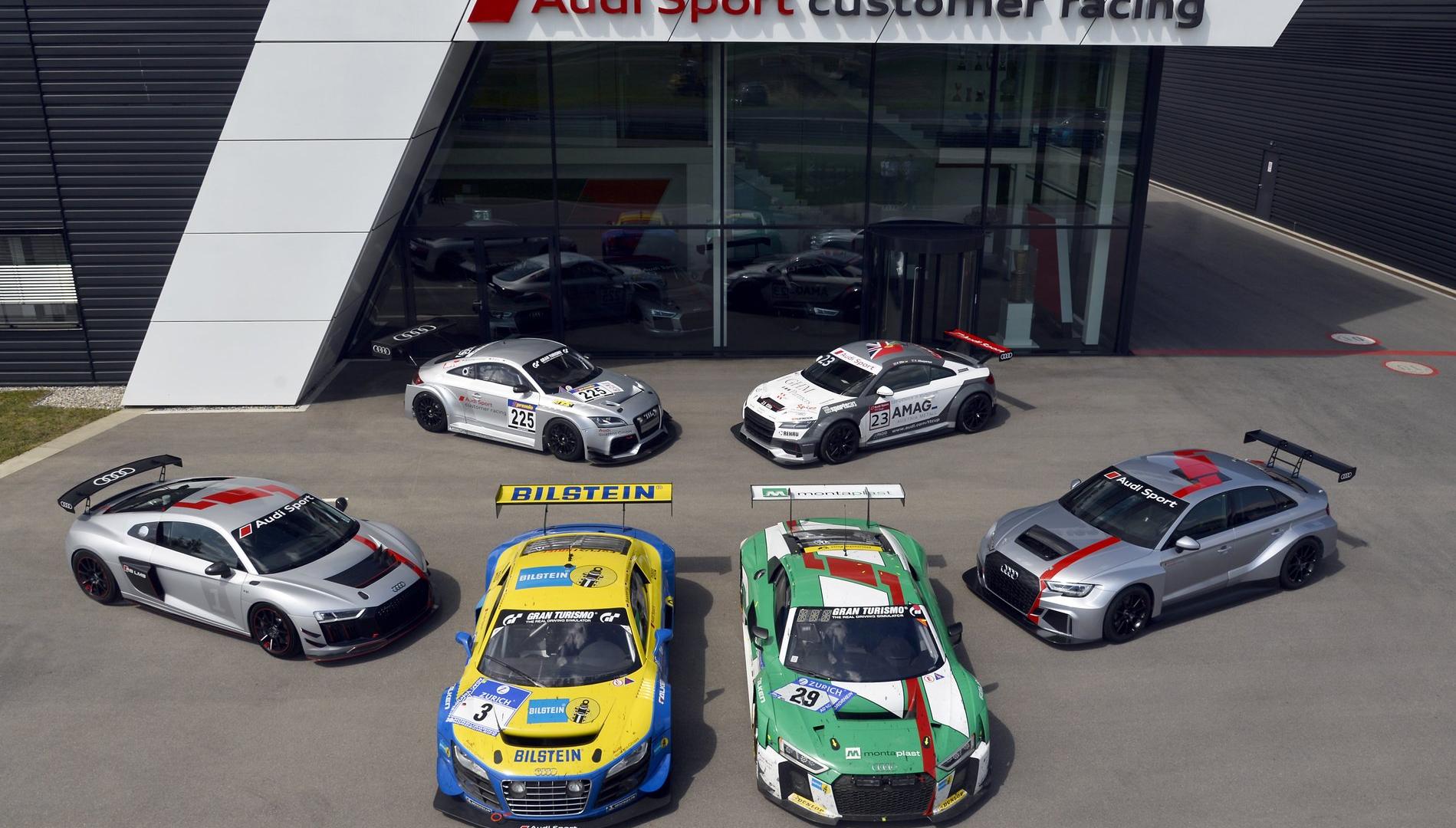 Na kolejnym etapie rozwoju swej ofensywy modelowej, pod koniec roku 2016, Audi Sport customer racing pokazało Audi RS 3 LMS. Przednionapędowy samochód przeznaczony dla popularnej kategorii TCR rozwija moc 257 kW (350 KM). Podobnie jak Audi TT cup, pojazd ten wytwarzany jest wraz z marką Cupra w ramach korporacji, w zakładach w hiszpańskim Martorell. Do dziś zbudowano 166 sztuk auta przeznaczonego dla początkujących w sportach motorowych. Tylko w pierwszym sezonie startów, Audi RS 3 LMS wywalczyło pięć tytułów mistrzowskich. Najnowszą propozycją ofertową Audi Sport customer racing jest Audi R8 LMS GT4. Auto to zaliczyło już wspaniały początek sezonu, zdobywając w styczniu tego roku pierwsze i drugie miejsce w 24-godzinnym wyścigu w Dubaju. W pierwszych sześciu miesiącach jego produkcji zbudowano 65 sztuk. Audi R8 LMS GT4 produkowane jest w zakładzie w Böllinger Höfe, a ze swoim seryjnym bratem dzieli 60 procent podzespołów.