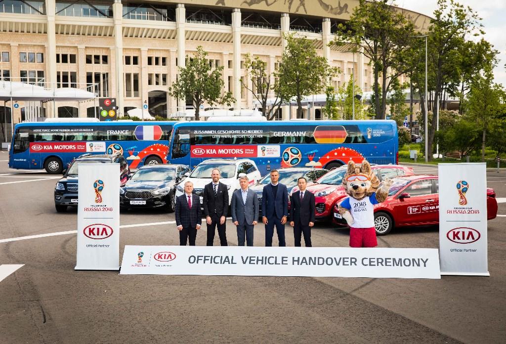Jako oficjalny partner FIFA Kia udostępniła flotę samochodów, która składa się z luksusowych sedanów K9, dużych i kompaktowych SUV-ów – Sorento i Sportage oraz z nowego Ceeda w wersji hatchback. Tymi samochodami będą wożeni nie tylko piłkarze i sędziowie, ale również urzędnicy i delegaci podczas wszystkich 64 spotkań. W ceremonii przekazania aut uczestniczyli: Jay Neuhaus – szef ds. marketingu i obsługi w FIFA, Eduardo Solis – dyrektor ds. współpracy i promocji w FIFA, Alexey Sorokin – przewodniczący i dyrektor generalny lokalnego komitetu organizacyjnego FIFA i legenda piłki nożnej Nemanja Vidic – reprezentant Serbii oraz były gracz Manchesteru United i Spartaka Moskwa.