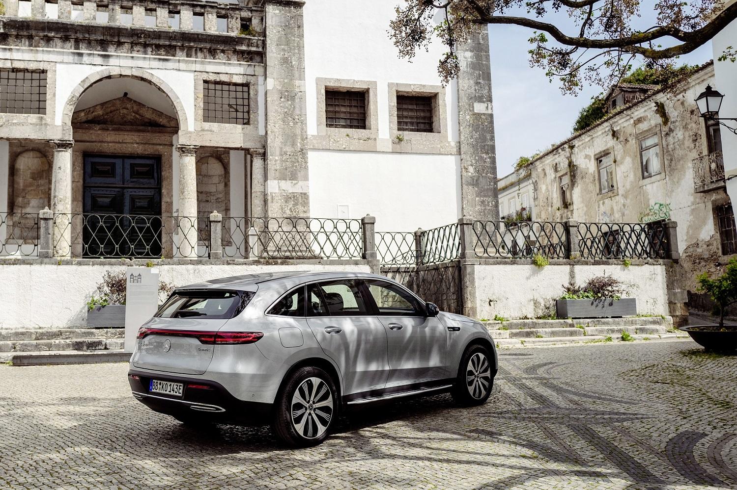 EQC Edition 1886 wyróżnia się starannie skoordynowanymi elementami na zewnątrz i wewnątrz pojazdu. Ekskluzywną prezencję nadwozia podkreśla czarna, wykończona na wysoki połysk osłona chłodnicy. Specjalna edycja dostępna jest wyłącznie w metalicznym, srebrnym kolorze „high-tech”. Wyróżniają ją też plakietki z napisem „EQC Edition 1886” na błotnikach oraz 10-ramienne, 20-calowe obręcze kół z lekkich stopów – z czarnymi i białymi dodatkami.