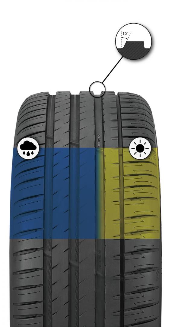 Nowa opona MICHELIN Pilot Sport 4 SUV charakteryzuje się bardzo dużą przyczepnością dzięki zastosowaniu asymetrycznego wzoru bieżnika: zewnętrzna część została zaprojektowana do jazdy po suchej nawierzchni, zaś wewnętrzna część – do jazdy po mokrej drodze. W oponie wykorzystano nową mieszankę z innowacyjnymi elastomerami[1] (funkcjonalnymi i hybrydowymi) oraz drobną krzemionką. Rowki zaprojektowano z myślą o uzyskaniu większej sztywności bieżnika i poprawie przyczepności bocznej. Dodatkowo aby podnieść precyzję prowadzenia, w bieżniku zastosowano technologię Dynamic Response oraz pas ze wzmocnieniem hybrydowym wykonanym z aramidu i nylonu.