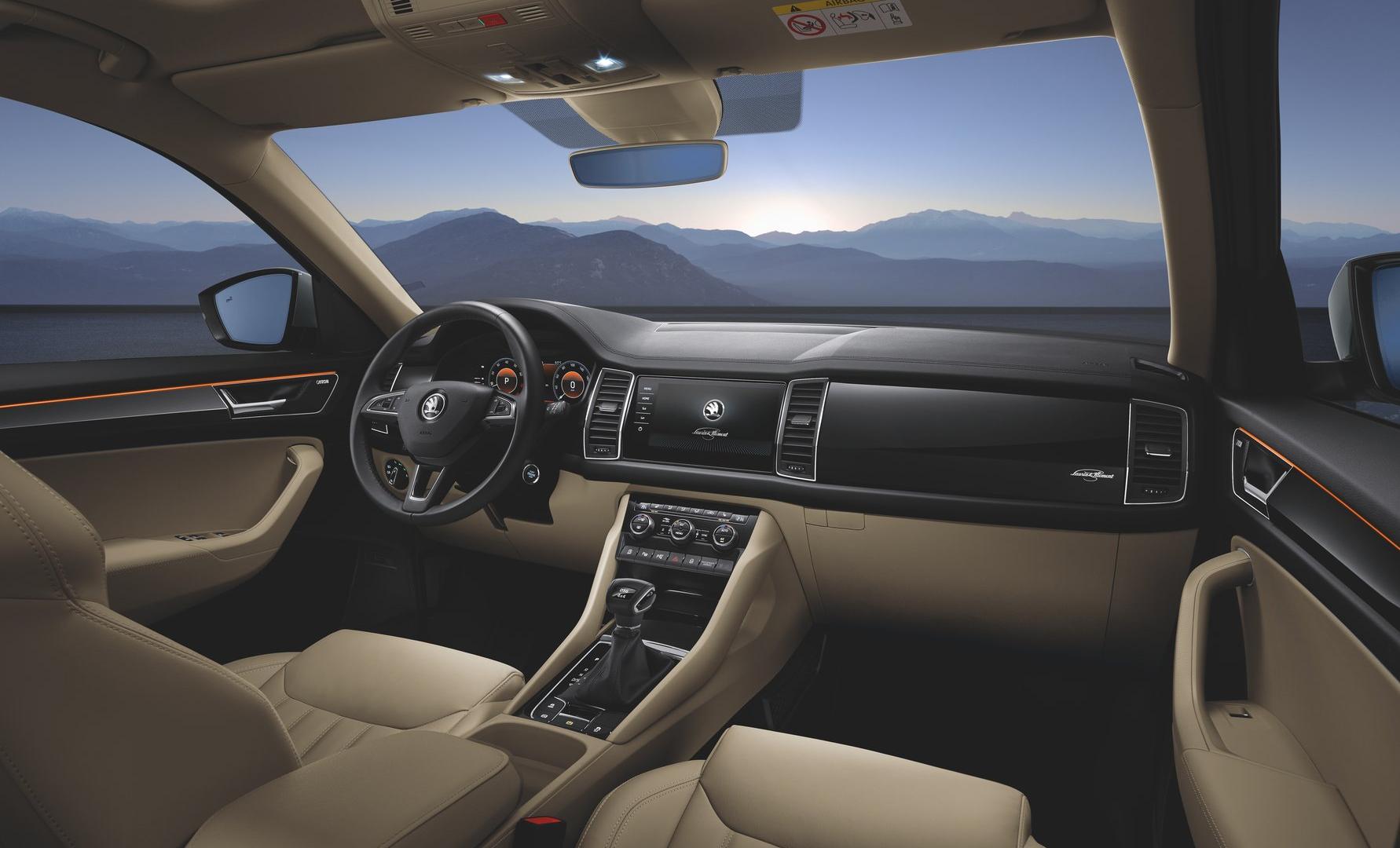 Kabina modelu KODIAQ zyskała w tej wersji elitarny charakter, zbudowany przez wyjątkowy design i najwyższej jakości materiały.
