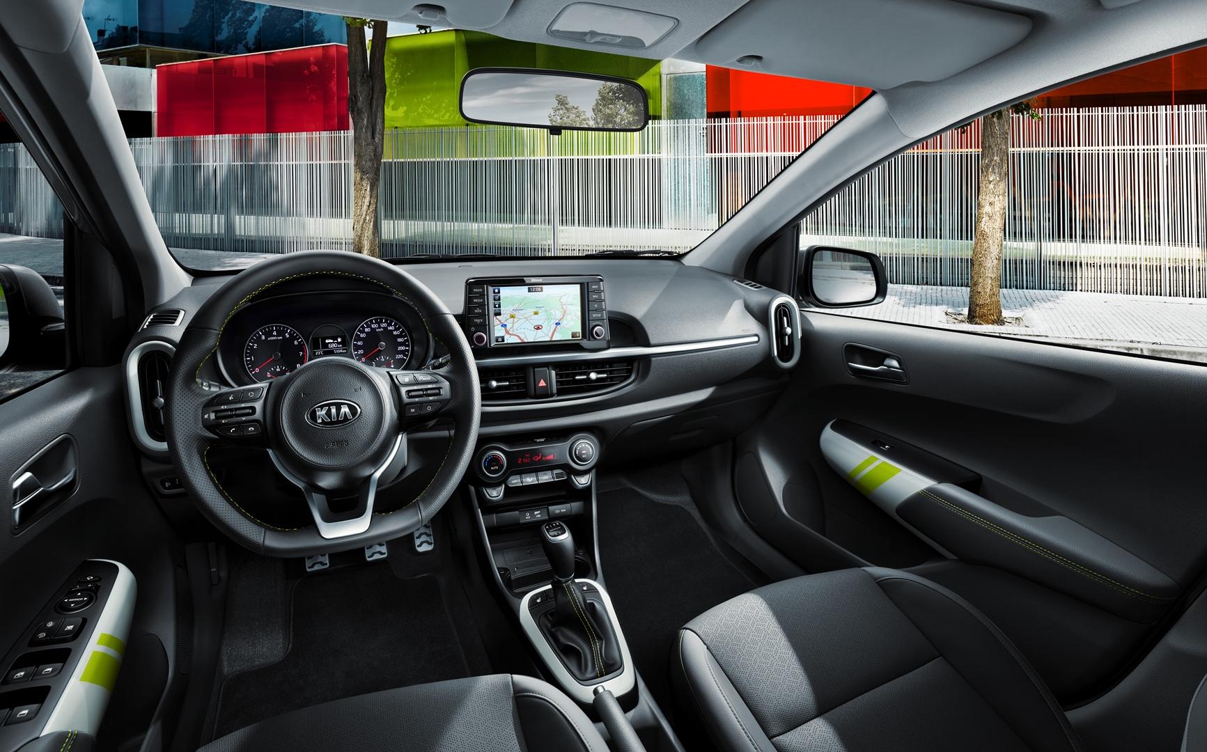 Auto otrzymało charakterystyczną dla samochodów marki Kia osłonę chłodnicy w kształcie tygrysiego nosa i bardziej imponujące zderzaki rodem z SUV‑a, z przednią i tylną nakładką zderzaka, które wyglądają jak wykonane z metalu. Wszystko po to, aby wygląd Picanto X-Line nabrał jeszcze większego zdecydowania i sugerował, że samochód poradzi sobie w każdym terenie. Dodatkowo grill i lampy przeciwmgielne wersji X-Line zyskały kontrastujące akcenty w kolorze limonki lub srebrnym, a czarne osłony wokół nadkoli wzmacniają wizualny efekt powiększonego prześwitu. Uwagę zwraca także chromowana, podwójna końcówka układu wydechowego. We wnętrzu znajdziemy : nową skórzaną tapicerkę w kolorze szarym z zielonymi przeszyciami, sportową kierownicę oraz elementy stylistyczne na panelach drzwi. Wraz z nowym crossoverem w gamie silnikowej Picanto debiutuje turbodoładowany silnik benzynowy 1.0T-GDI o mocy 100 KM.