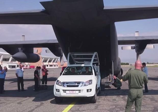 Do Polski papamobile dotarł już w czerwcu z Armenii wojskowym samolotem transportowym C-130 Hercules, którego załoga na co dzień stacjonuje w Powidzu.