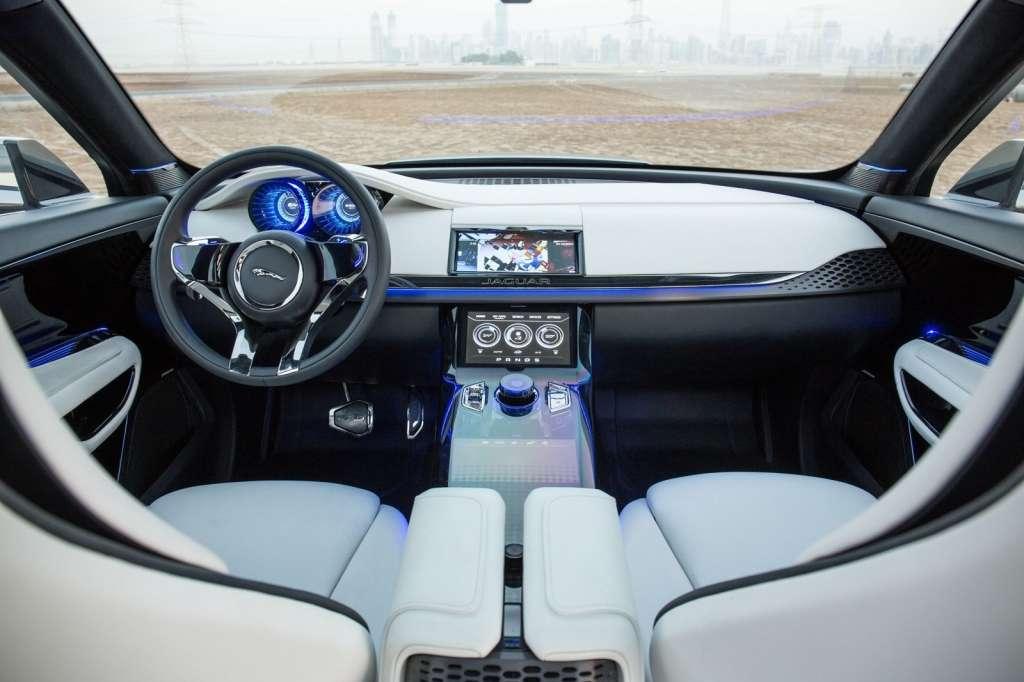 Nieco więcej emocji mamy w tylnej części: światła wyraźnie nawiązują do modelu F-Type, na klapie mamy spory spojler, zaś cała linia tyłu wydaje się być nieco przeciągnięta. Warto również wspomnieć o wnętrzu, ale tu projektanci popuścili wodze fantazji i zapewne niewiele elementów przejdzie skrupulatną selekcję działu księgowości.