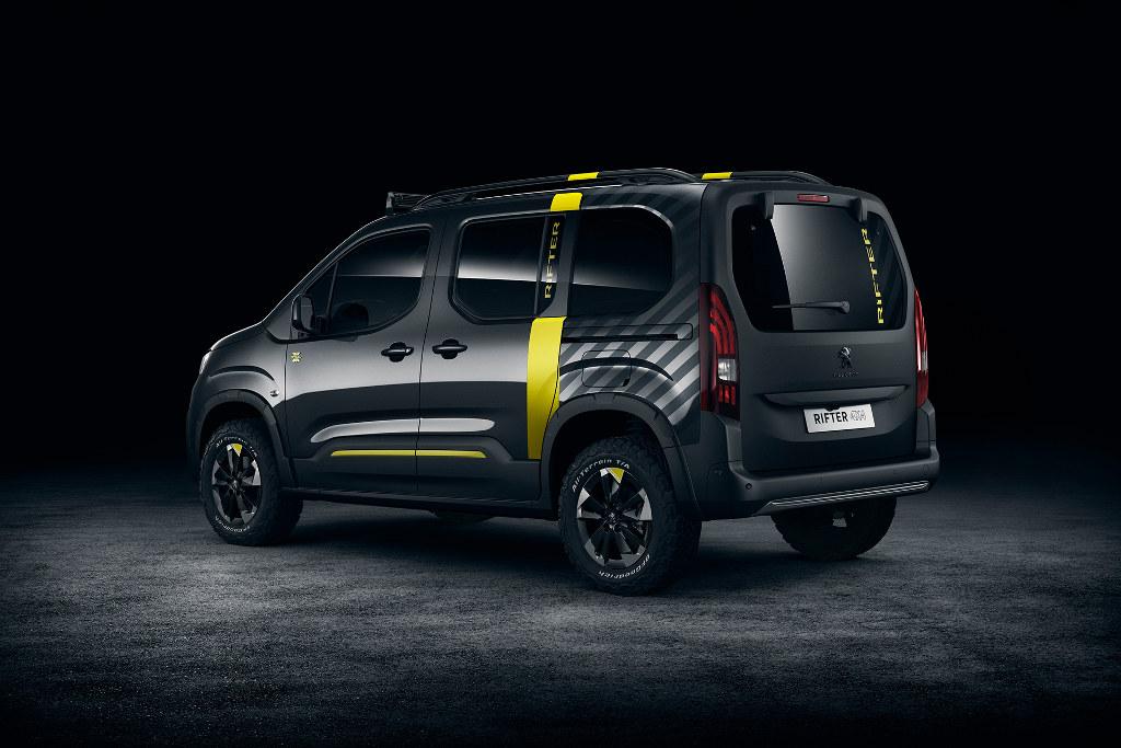 Choć ogólna linia nadwozia koncepcyjnego Peugeota jest zbliżona do seryjnego Riftera, to jednak prototypowy model wyróżnia się licznymi detalami, które podkreślają jego off-roadowe ambicje. Przede wszystkim zwiększono jego prześwit (o 80 mm), wyposażono go w terenowe opony, dodano liczne osłony oraz inne elementy zapewniające mu więcej charakteru. Już z samej racji przynależności do segmentu kombivanów Rifter 4x4 jest w stanie przewieźć sporo bagażu. Gdyby jednak było za mało miejsca, skorzystać można z relingów i bagażnika dachowego.