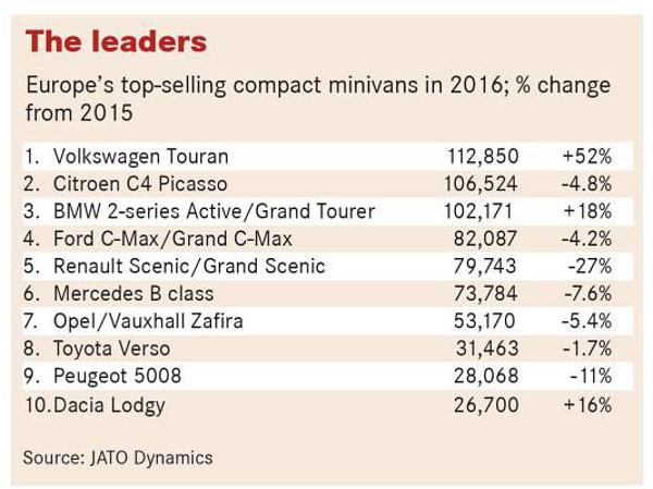 W 2016 r. liderem europejskiego rynku minivanów został Volkswagen Touran, który po debiucie w 2015 r. nowej odsłony modelu, zanotował przed rokiem aż 52-proc. wzrost sprzedaży i tym samym zdołał wyprzedzić wcześniejszego lidera - Citroena C4 Picasso. Jednak już początek tego roku był znacznie słabszy w wykonaniu niemieckiego minivana, którego sprzedaż spadła o 8 proc. W kolejnych miesiącach będzie jeszcze trudniej, zwłaszcza gdy na rynku pojawi się siedmiomiejscowy Tiguan Allspace.