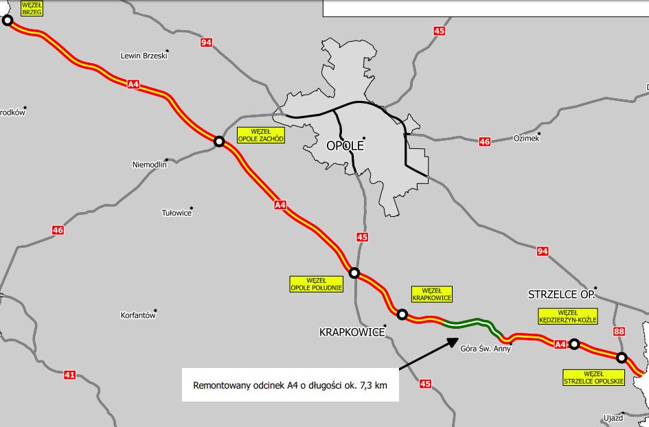 Na przełomie lat 2013-2018 wyremontowano już blisko 133 km opolskiej autostrady A4 wraz z 4 węzłami: Brzeg, Opole Zachód, Opole Południe oraz Krapkowice.