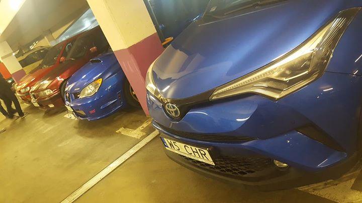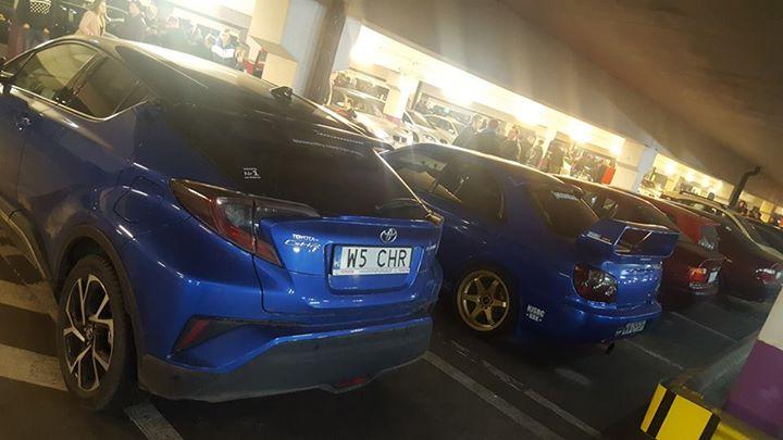 Nasz C-HR wpadł na Bora Bora (Krakowski zlot fanów szybszej jazdy) i znalazł tam dwa bliskie sobie auta. Jedno zbliżone kolorem, drugie - napędem. Poznajecie to drugie?