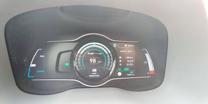 Przejechaliśmy już Koną Electric 100 km na trasie Warszawa-Kraków. Światła włączone, telefon ładowany podczas jazdy indukcyjnie. Dodatkowo, przy wyjeździe z Warszawy przez chwilę była uruchomiona klimatyzacja. Prędkość na trasie 100-110 km/h.