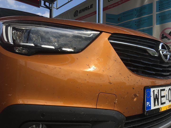 Opel Crossland X przejechał już niemal 800 km, a w związku z tym, że ponad 300 km przebiegało przez autostrady i drogi szybkiego ruchu, czas wygrzebać owady z grilla. Niestety, innego grilla na dzisiaj nie przewidujemy :)