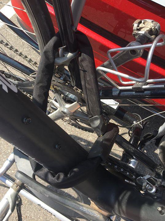 Niestety, dzisiaj po raz pierwszy ktoś podjął nieudaną (na szczęście!) próbę przywłaszczenia sobie jednego z naszych testowych rowerów wprost z bagażnika. Na zdjęciach widać poprzecinane taśmy mocujące. Na szczęście łańcuch, rowerowe zapięcie oraz fabryczne zabezpieczenie ramienia bagażnika odstraszyły niedoszłego złodzieja. Pamiętajcie, żeby dokładnie zabezpieczać rowery w podróży, zwłaszcza kiedy musicie je zostawić na noc w centrum miasta!