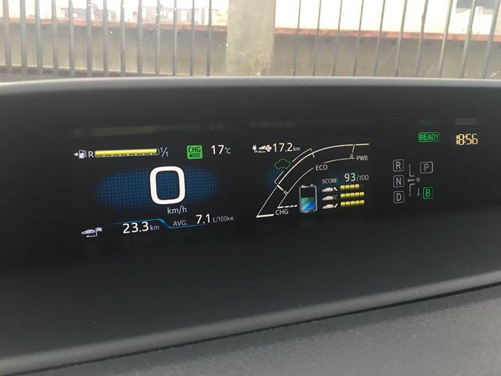 W Priusie Plug-in Hybrid wyładowała się bateria podczas jazdy, dlatego postanowiliśmy na krótkiej trasie włączyć tryb Charge, w którym silnik spalinowy napędza koła i doładowuje baterię. Co ciekawe, na dystansie przejechanych ponad 23 kilometrów układ doładował baterię prawie do ponad 1/3 pojemności. Komputer pokładowy wskazuje, że na tak dopasowanej baterii można przejechać aż 17,2 km lub 18,2 km przy wyłączonej klimatyzacji. Komputer wskazał, że spalanie przy jeździe (cykl mieszany) w tym trybie wyniosło 7,1 l/100 km.