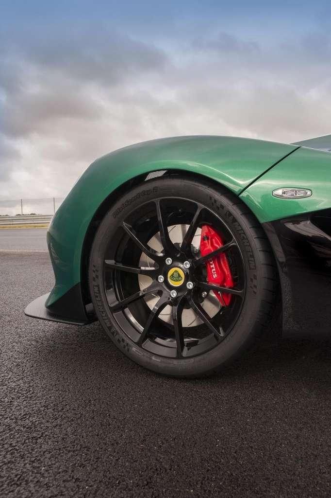 Prędkość maksymalna została ograniczona do 280 km/h, podczas gdy model drogowy będzie w stanie pojechać o 10 km/h szybciej. To wszystko zasługa nie tylko niskiej masy, ale również bardzo mocnej jednostki napędowej. A mowa tu o silnik 3.5 V6 z doładowaniem mechanicznym z modelu Evora o mocy 450 KM dostępnych przy 7000 obr./min z momentem obrotowym 450 Nm osiąganym przy 3500 obr./min. Napęd trafia na koła za pośrednictwem 6-biegowej skrzyni manualnej lub sekwencyjnej.