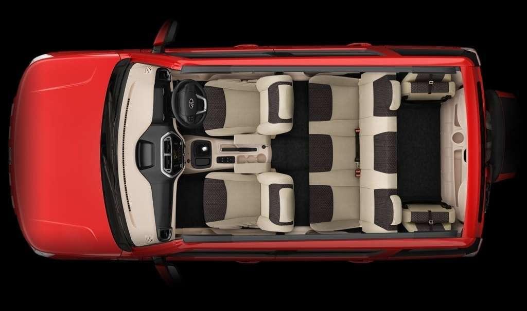 Stylistka, co ciekawe, była inspirowana wyglądem nowoczesnych czołgów. Stąd ostre linie, niczym odrysowane od ekierki. Nadwozie mierzy niecałe 4 metry i, choć trudno w to uwierzyć, jest siedmioosobowe. To zasługa dwóch składanych krzesełek w bagażniku, na których można usiąść bokiem do kierunku jazdy.