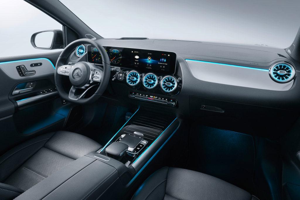 Tak jak np. w Klasie A, również nabywca B-klasy będzie mógł wybrać spośród trzech możliwości aranżacji panelu z wyświetlaczami – dwoma 7-calowymi, dwoma 10,25-calowymi lub po jednym 7- i 10,25-calowym. Z innych modeli zapożyczone zostały także "turbinowe" kratki nawiewu. Fotele w nowym modelu oferują większy zakres regulacji, co, wraz z większą ilością miejsca nad głową i na ramiona, zwiększy komfort podróży. Jeśli mowa o fotelach, to dostępne są funkcje podgrzewania, wentylacji oraz masażu.