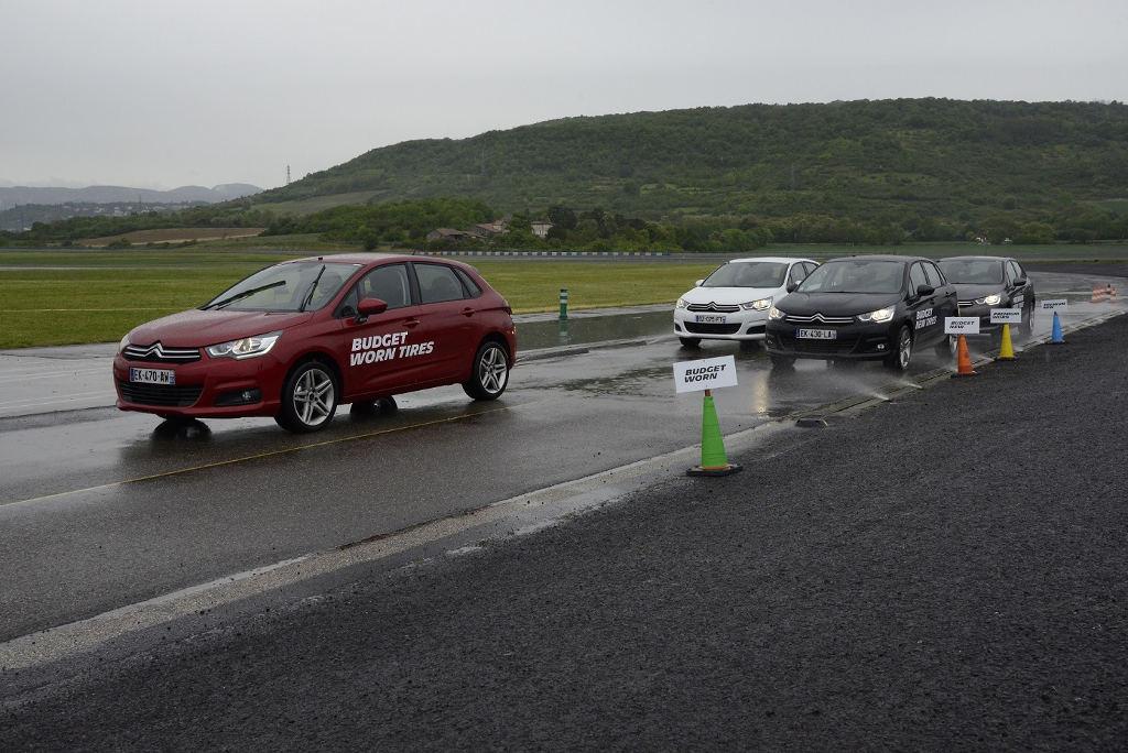 Również na mokrym niektóre używane opony zapewniają porównywalne lub lepsze osiągi od nowych opon. Mimo iż wszystkie nowe opony sprzedawane w Europie spełniają minimalne kryteria obowiązujące w UE (dotyczące zwłaszcza drogi hamowania), to testy Michelin wykazały, że efektywność hamowania niektórych opon na mokrej nawierzchni szybko spada wraz z ich zużywaniem. Z kolei inne opony spełniają zakładane normy przez cały okres ich eksploatacji.