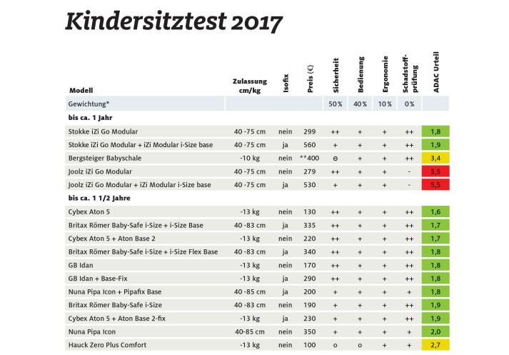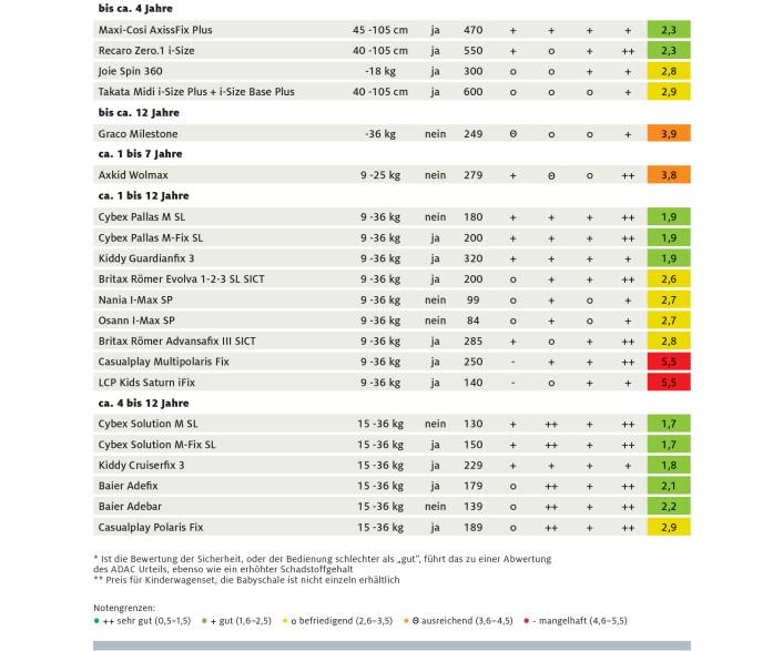 W tegorocznym teście specjaliści z niemieckiego automobilklubu wzięli pod lupę aż 37 modeli dziecięcych fotelików samochodowych. Wyniki są zadowalające, gdyż aż 22 foteli otrzymały notę "dobry", a kolejne dziewięć ocenę "zadowalający". Obie te oceny, wprawdzie nie maksymalne, oznaczają, że w skrajnych przypadkach fotelik zapewni dziecku odpowiedni poziom ochrony.