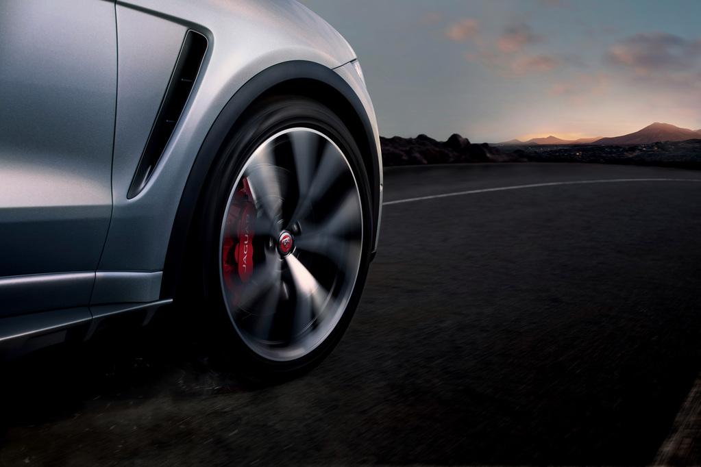Nie tylko jednak wartości przyspieszenia są godne podziwu w tym modelu. Specjaliści z SVO (Special Vehicle Operations) zmodyfikowali m.in. zawieszenie, układ hamulcowy, wydechowy oraz nadwozie. W zawieszeniu zamontowano sztywniejsze sprężyny, o 30% na przedniej osi i o 10% na tylnej. W połączeniu z nowym stabilizatorem zapewnić mają one mniejsze przechyły nadwozia podczas dynamicznie pokonywanych zakrętów. F-Pace SVR będzie standardowo wyposażony w 21-calowe felgi, ale na życzenie będzie można zamówić również felgi o jeden rozmiar większe. Opony na tylnej osi mają większą szerokość, co ma się przełożyć na zwiększenie stabilności. Odpowiednio krótka droga hamowania to zasługa zwiększonych tarch hamulcowych (395 mm).