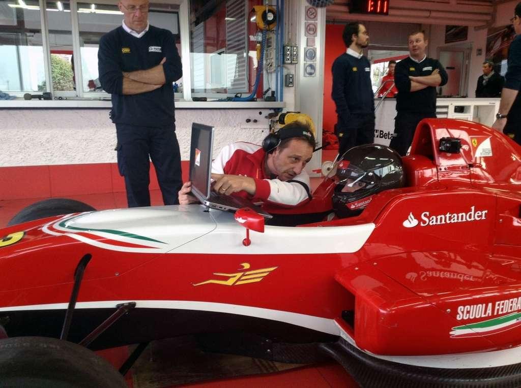 W drugiej części dnia odbyły się testy w profesjonalnym symulatorze F1, zarezerwowanym wyłącznie dla członków zespołu Scuderia Ferrari. Bartek Mirecki jako jeden z nielicznych zawodników na świecie miał okazję spróbować swoich sił za kierownicą tego urządzenia. Pierwsze jazdy wykazały brak doświadczenia i obycia Polaka z pojazdami jednomiejscowymi, ale w bardzo szybkim tempie uczył się prowadzenia bolidu. Instruktorzy dokładnie omawiali z Bartkiem każdy przejazd dzięki czemu częstochowianin poprawiał swoje błędy i stale przyspieszał. Po kilkunastu okrążeniach dorównał bardziej doświadczonym kolegom, a przede wszystkim zdobył uznanie trenerów Akademii Ferrari natychmiastowym wyciąganiem wniosków, korygowaniem błędów, powtarzalnością i dynamicznym progresem umiejętności prowadzenia wirtualnego bolidu. Wykazał cechy, których zespół z Maranello poszukuje u młodych kierowców.