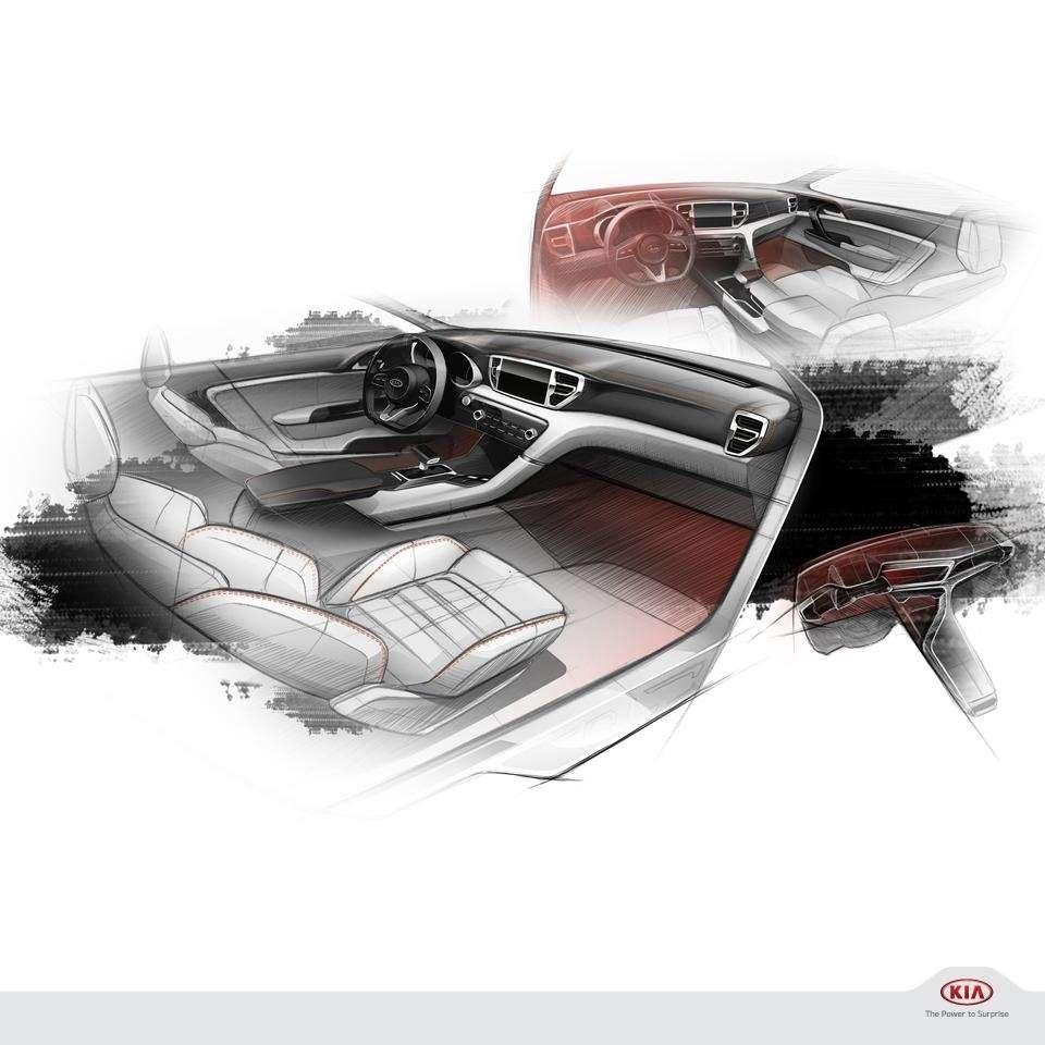 Sportowy styl odnajdziemy także we wnętrzu. Na szkicach Kia postawiła na solidnie wyprofilowane fotele, kokpit zorientowany na kierowcę, zegary umieszczone w głębokich tubach oraz podciętą kierownicę. Dotychczasowi posiadacze Sportage'a nie muszą się obawiać, to tylko prężenie muskułów. Użytkowy charakter także widać w postaci dużego centralnego ekranu dotykowego, czy automatycznej skrzyni biegów.