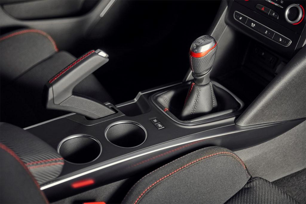 W kabinie za sportowy charakter odpowiadają sportowe fotele, czerwone przeszycia i czarna podsufitka, a także aluminiowe pedały oraz dźwignia zmiany biegów.