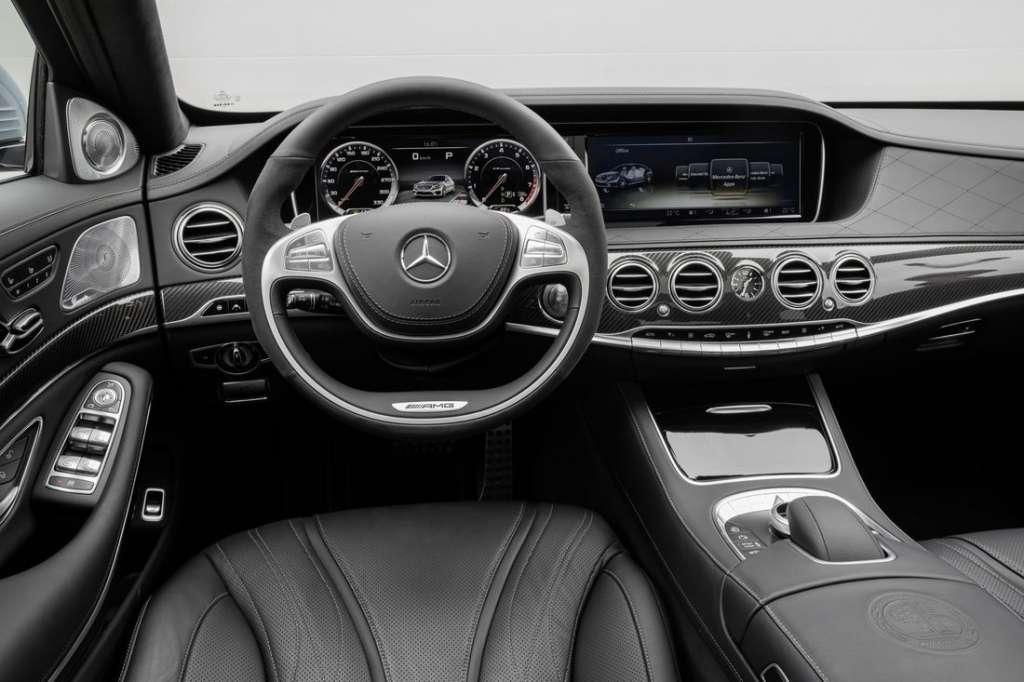 Mercedes S 63 AMG różni się od standardowych odmian klasy S także wewnątrz. Kierowca zajmuje miejsce na fotelu, który już na zdjęciach robi piorunujące wrażenie, rękoma chwyta sportową kierownicę, a rozglądając się wokół, zauważa akcenty ozdobne z włókna węglowego i liczne emblematy AMG.