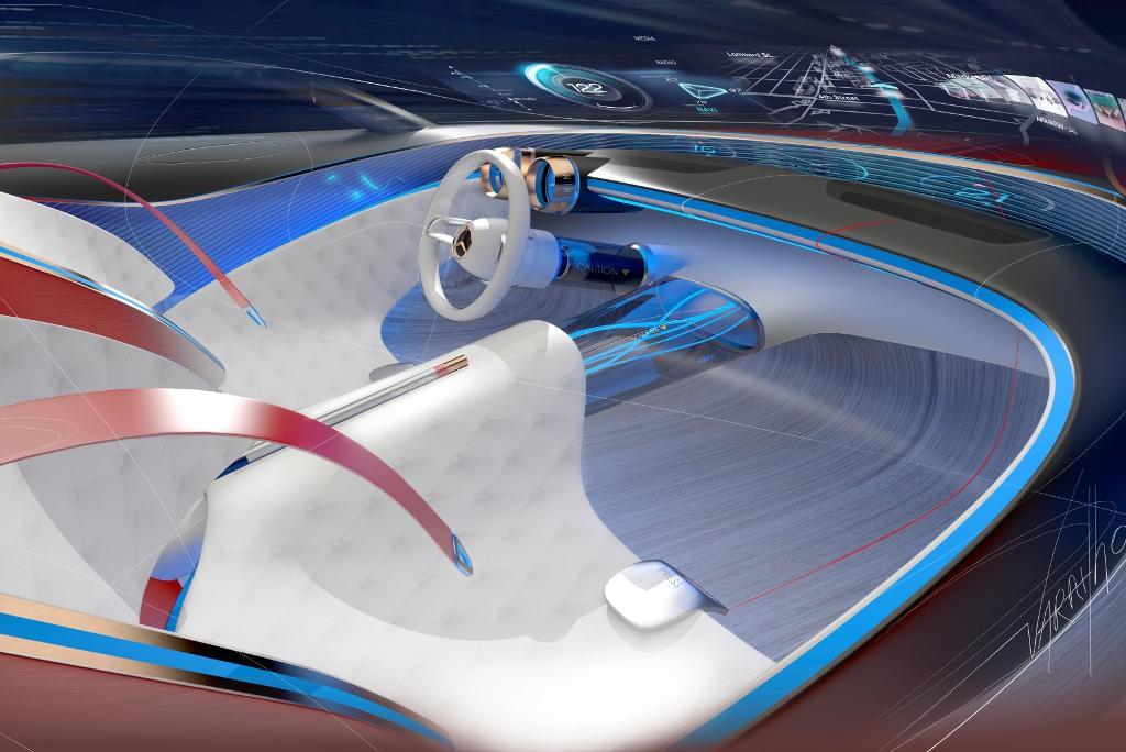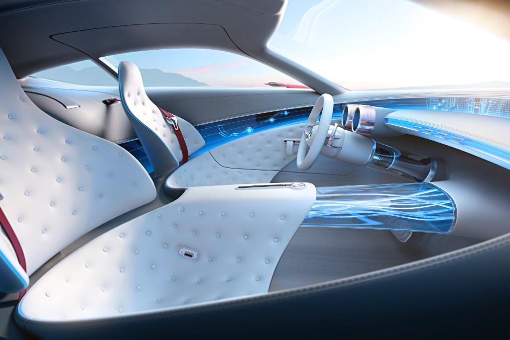 Wnętrze Mercedesa-Maybacha wygląda również nowocześnie, choć trzeba przyznać, iż jednocześnie dość minimalistycznie. Dwa zegary za kierownicą, do tego spory ekran dotykowy, służący do zarządzania wszystkimi urządzeniami pokładowymi oraz wyświetlacz typu head-up biegnący wzdłuż całej przedniej szyby.