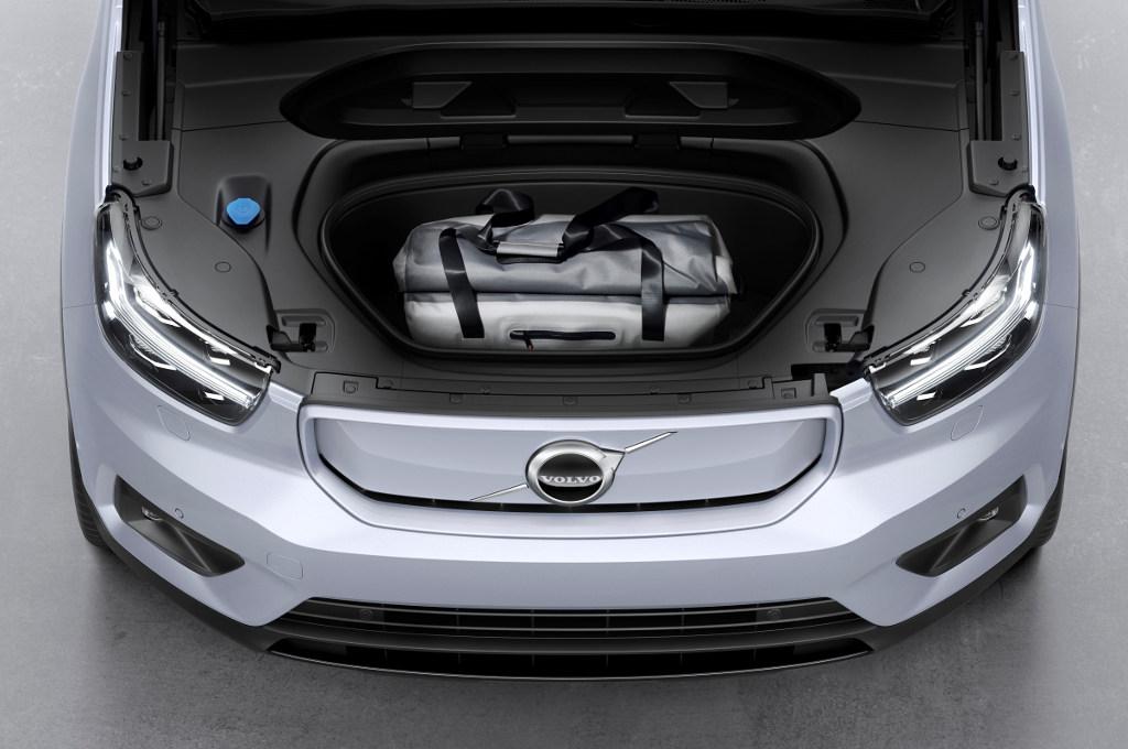 Konstrukcja układu napędowego pozwoliła wygospodarować trochę wolnej przestrzeni pod maską silnika. Nadużyciem było określenie, że Volvo XC40 Recharga ma dwa bagażniki, ale duży schowek w przedniej części nadwozia może okazać się przydatny.