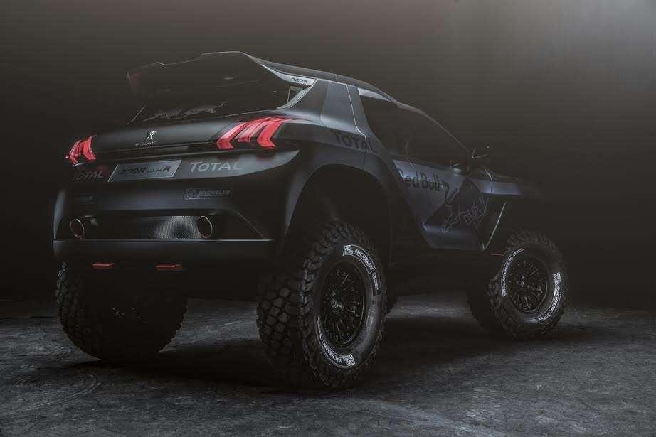 Już na samym niemal wstępie biuro projektowe Peugeot Sport musiało dokonać podstawowego wyboru. Jaki powinien być napęd tej rajdowej maszyny: na cztery czy na dwa koła? Zgodnie z przepisami regulaminu rajdu decyzja ta miała wpływ na dwa bardzo istotne parametry samochodu: - „Przeprowadziliśmy dogłębną analizę rozwiązań praktykowanych w rajdach, żeby zobaczyć atuty różnych opcji i finalnie zdecydowaliśmy się na wybór dość odmienny od konkurencji. Ze względu na parametry terenowe i zdolność jazdy po piasku wersji z napędem na dwa koła, zdecydowaliśmy się finalne na to właśnie rozwiązanie. Dzięki temu możemy mieć większe koła i większy skok zawieszenia wraz z wszystkimi wypływającymi z tego korzyściami.” Bezpośrednim skutkiem tej decyzji jest wyposażenie 2008 DKR w 37-calowe opony Michelin mające niemal 94 cm średnicy!