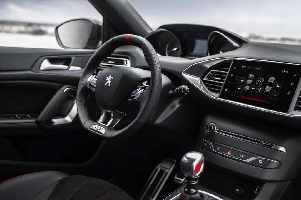 Oczywiście Peugeot 308 GTi wygląda nieco bardziej agresywnie w porównaniu do słabszej edycji 308 GT. Z tyłu mamy lakierowany na czarno dyfuzor i przeprojektowany zderzak z dwiema końcówkami układu wydechowego, z przodu agresywny zderzak z większymi wlotami powietrza, większe listwy progowe po bokach oraz większe felgi, które kryją wydajne hamulce z tarczami o średnicy aż 380 mm z przodu oraz 268 mm z tyłu.