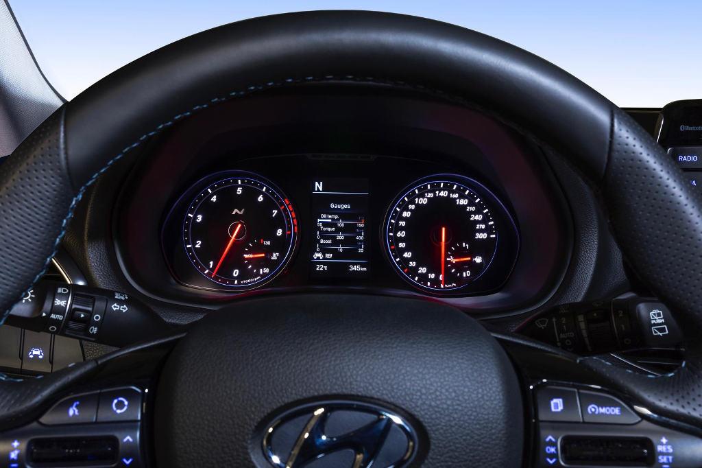 Odpowiednio do właściwości jezdnych dostosowana została również sylwetka nadwozia. Nie będzie żadnego problemu, by od razu odróżnić tę wersję silnikową i30. W kabinie znajdziemy sportowe fotele oraz kierownicę, w standardzie pięciocalowy ekran dotykowy, który możemy na życzenie zastąpić 8-calowym. Zegary, wzorem sportowych aut, mają wskazówki startujące od godziny szóstej.