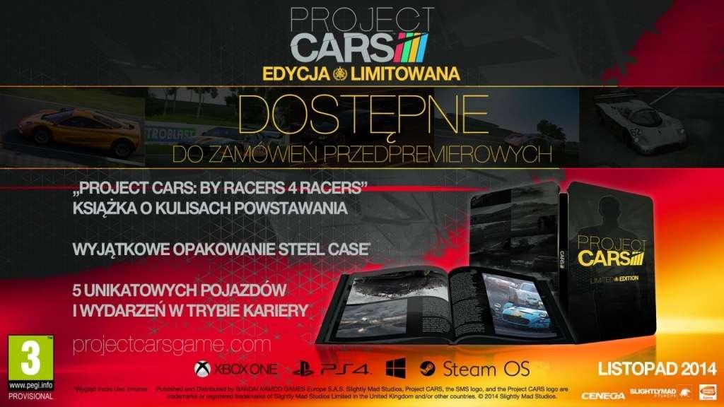 Ci, którzy zamówią Project Cars przed premierą, mogą liczyć na trzy ekskluzywne samochody: Ariel Atom 3 Mugen, Pagani Zonda Cinque Roadster praz Ruf CTR3 SMS-R . Premiera – listopad 2014.
